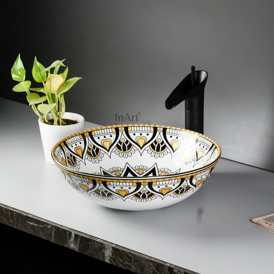 InArt Table Top Wash Basin Design 60 x 40 CM Gold Black DW252
