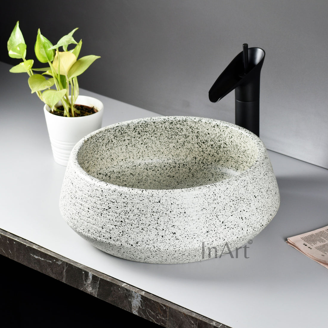 InArt Ceramic Counter or Table Top Wash Basin Matt White Grey Marble 60 x 37 CM DW187