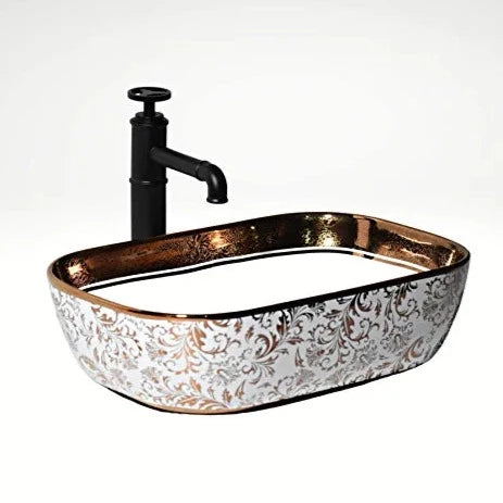 Ceramic Designer Wash basin in Rose Gold White This Countertop Basin is Perfect for Any Modern...