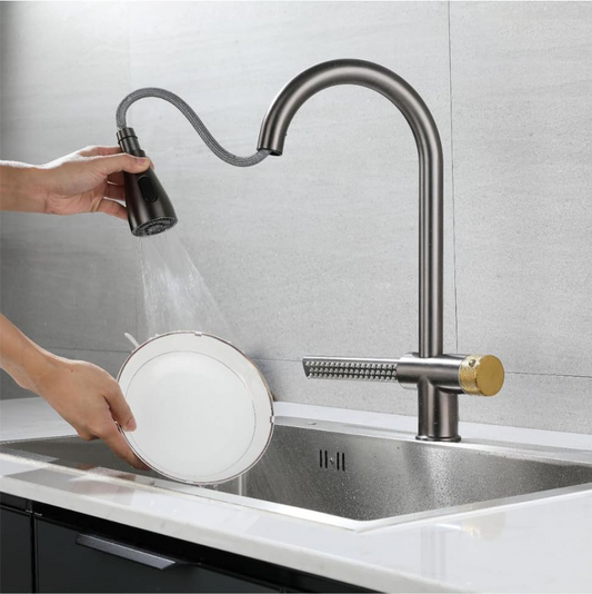 InArt 304 Stainless Steel Kitchen Sink with Pull-Down Tap, Silver Satin Finish (75x46x25.5 cm) – SS Kitchen Sink