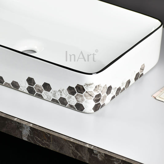 Modern Geometric Design The InArt Prism Cut Glass Table Top Wash Basin features a striking...