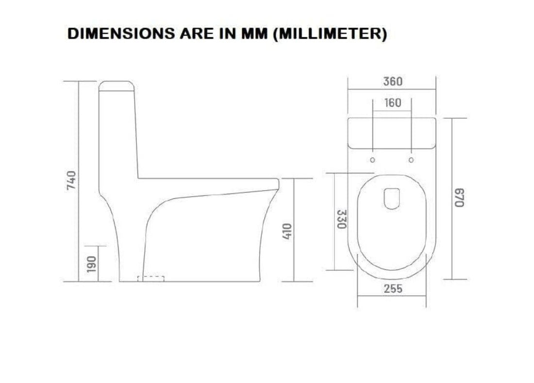 InArt Designer One Piece P Trap Commode – White Ceramic, Soft Close, 66.5x45.5x56 cm