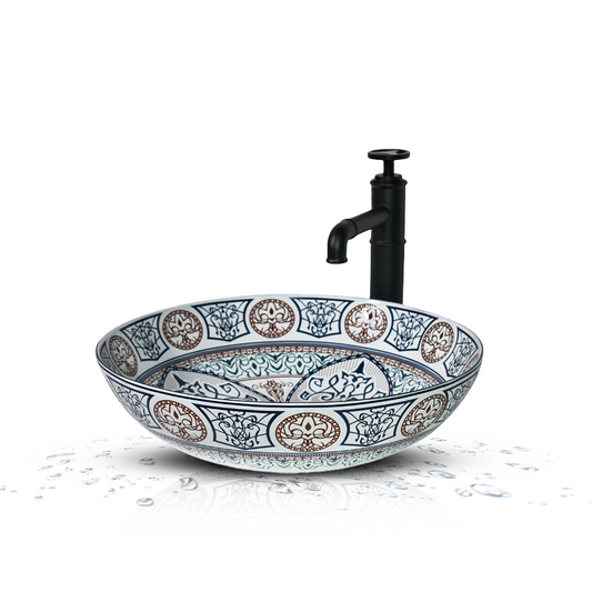 Transform Your Bathroom with the InArt Multi-Color Moroccan Ceramic Wash Basin Infuse a touch of...