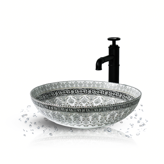 Enhance Your Space with the InArt Moroccan White Floral Ceramic Wash Basin Introduce timeless elegance...