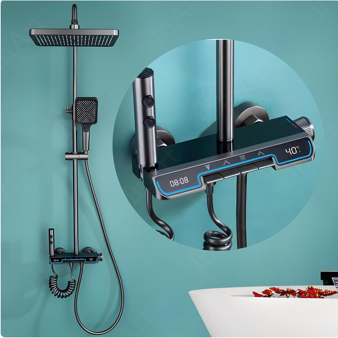 InArt Shower System with Digital Temperature Display, 11-Inch Rain Shower Head, Handheld Shower, and Wall-Mounted Fixtures Gun Grey Color SP059
