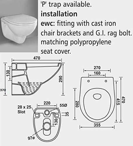 InArt Ceramic Wall Mounted, Wall Hung Rimfree, Rimless Western Toilet, Commode, Water Closet, EWC with Soft Close Seat Cover WH016