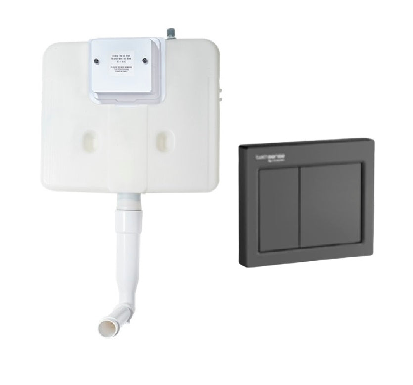 नॉब फिटिंग डुअल फ्लश टैंक और ब्लैक ग्लॉसी फ्लश प्लेट के साथ एशियन पेंट्स बाथसेंस कंसील्ड टैंक