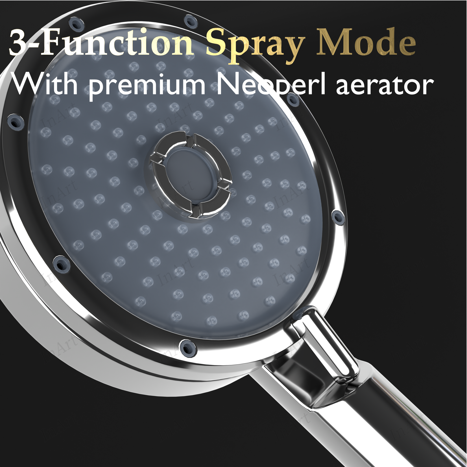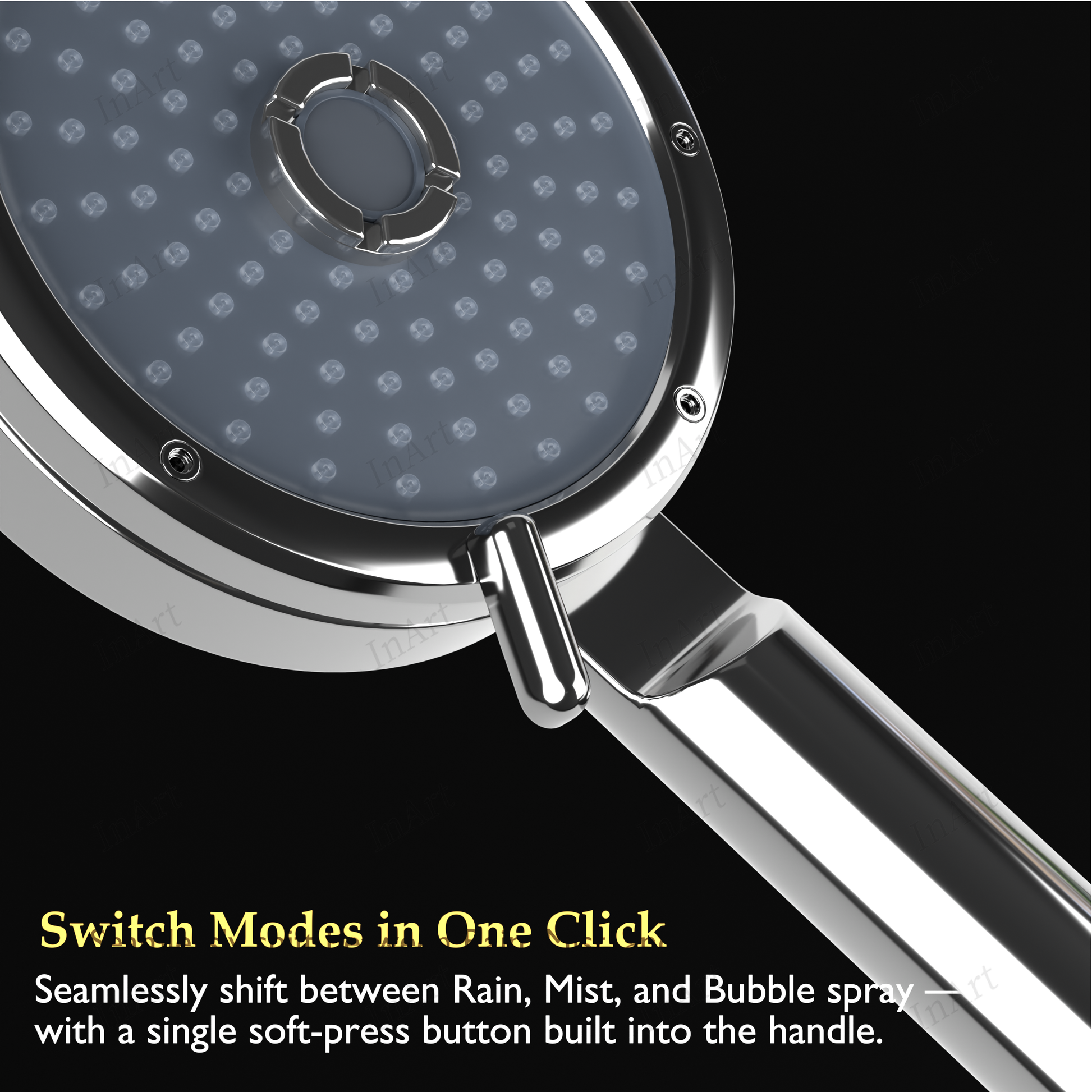 InArt® 3-Function Hand Shower Set – Chrome Finish | Rain, Bubble Massage & Mist Spray | Easy-Clean Silicone Nozzles | Model HS002
