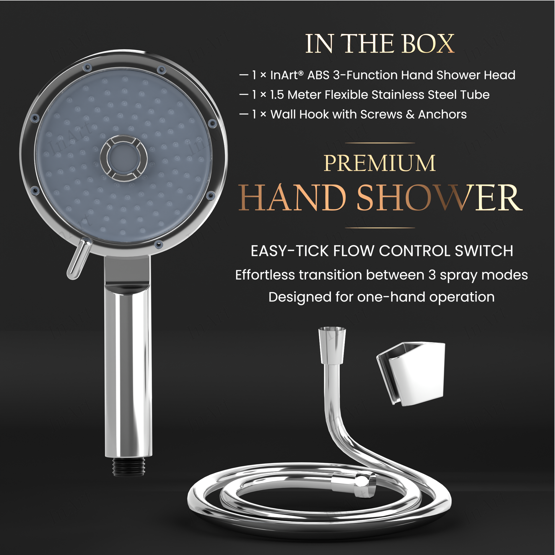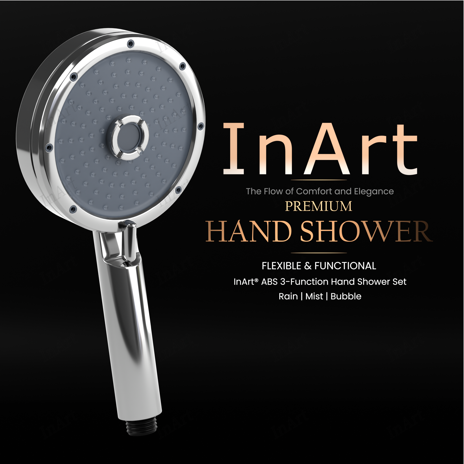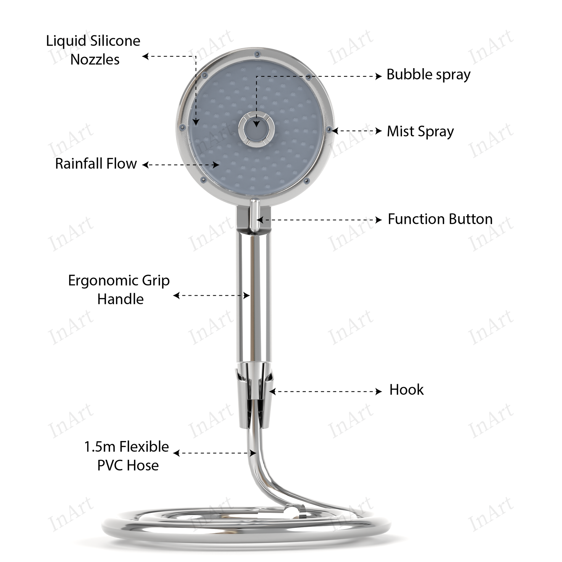 InArt® 3-Function Hand Shower – Rain, Bubble Massage & Mist | Chrome Finish | Wall Mount with Hose & Hook | HS002