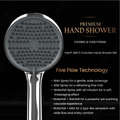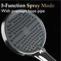 - Full Set – Includes 5-function hand shower head, SS-304 grade 1.5m flexible stainless steel hose, wall hook, and installation accessories.