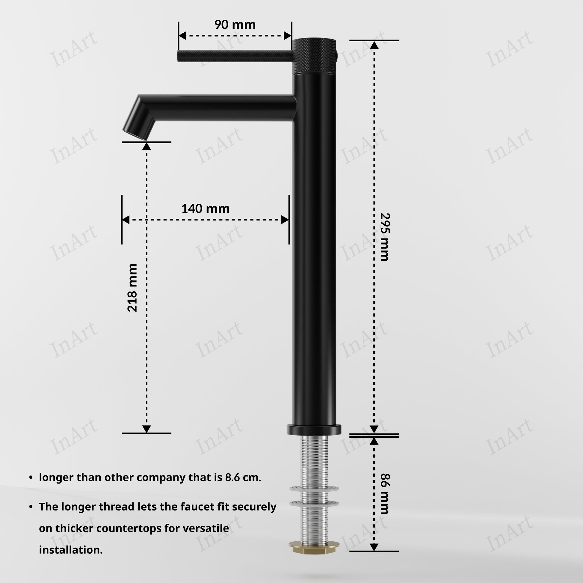 The standout feature of this tap is its 3-inch extended thread length, ensuring universal compatibility with even the thickest marble, granite, or quartz countertops. While standard taps often fail to fit, the InArt® Black Matt faucet is engineered for perfect installation every time.
