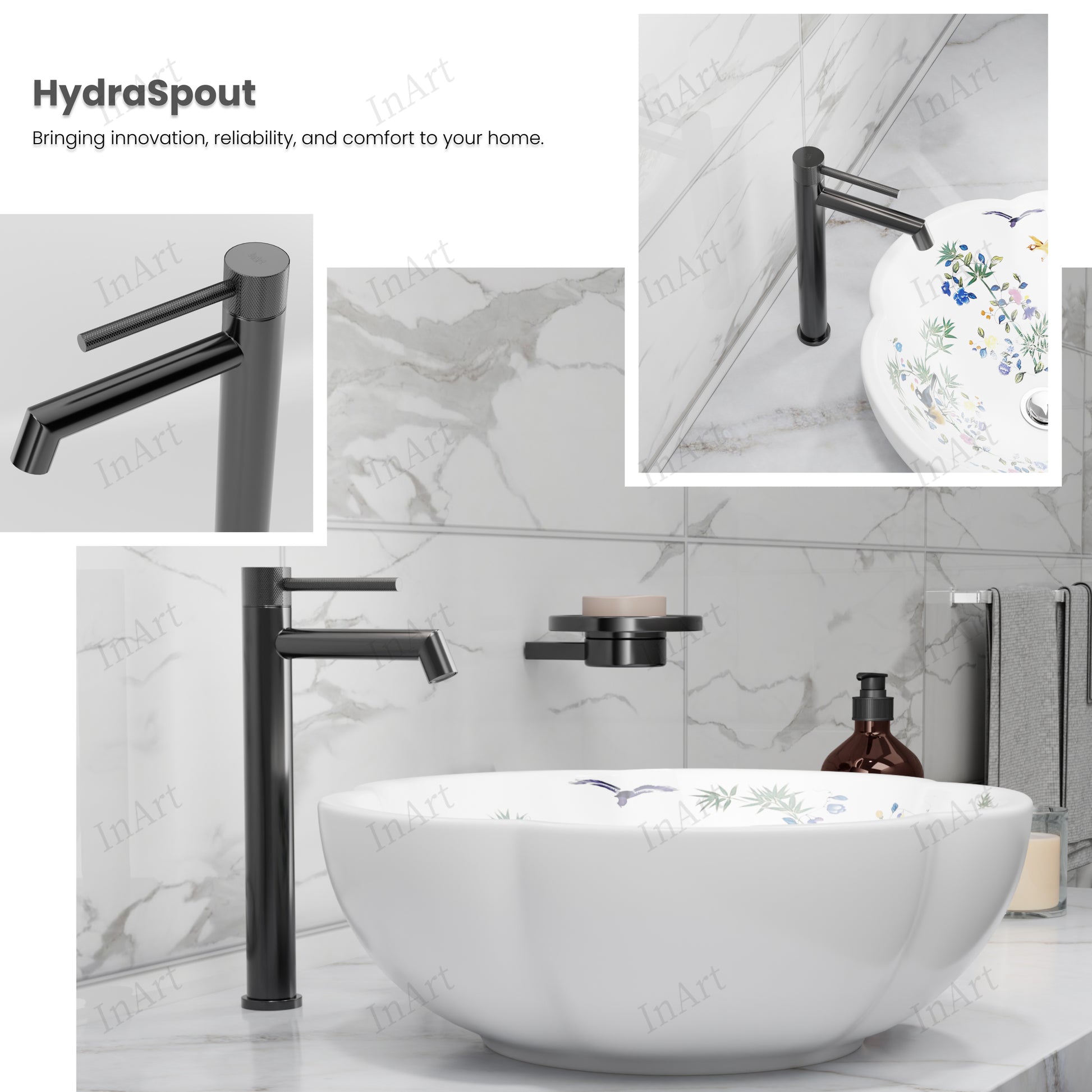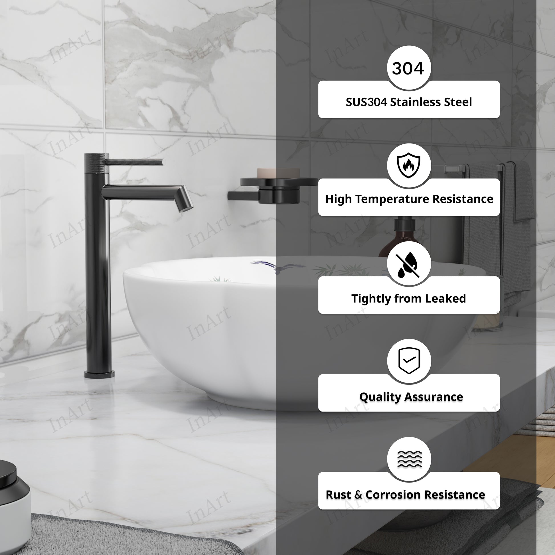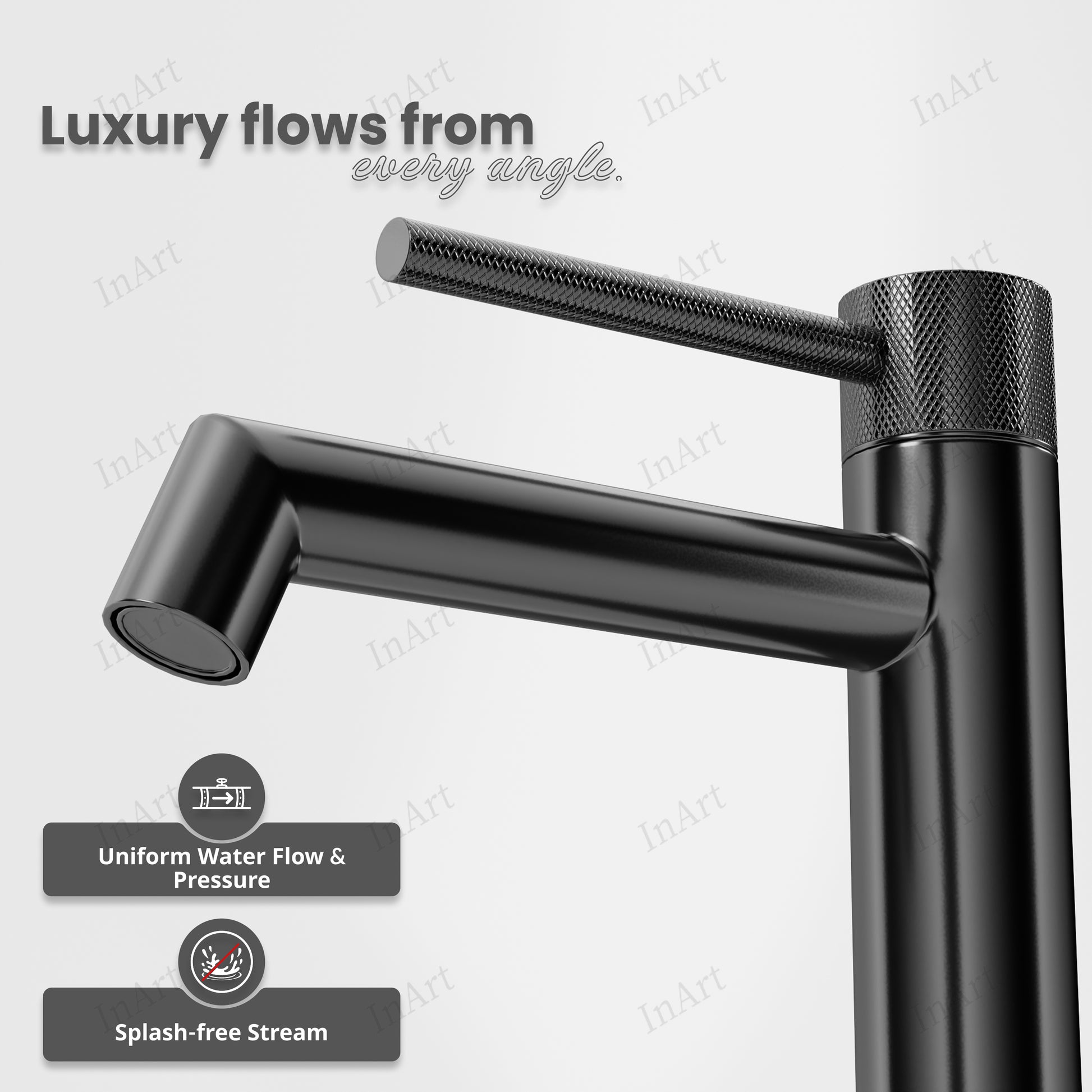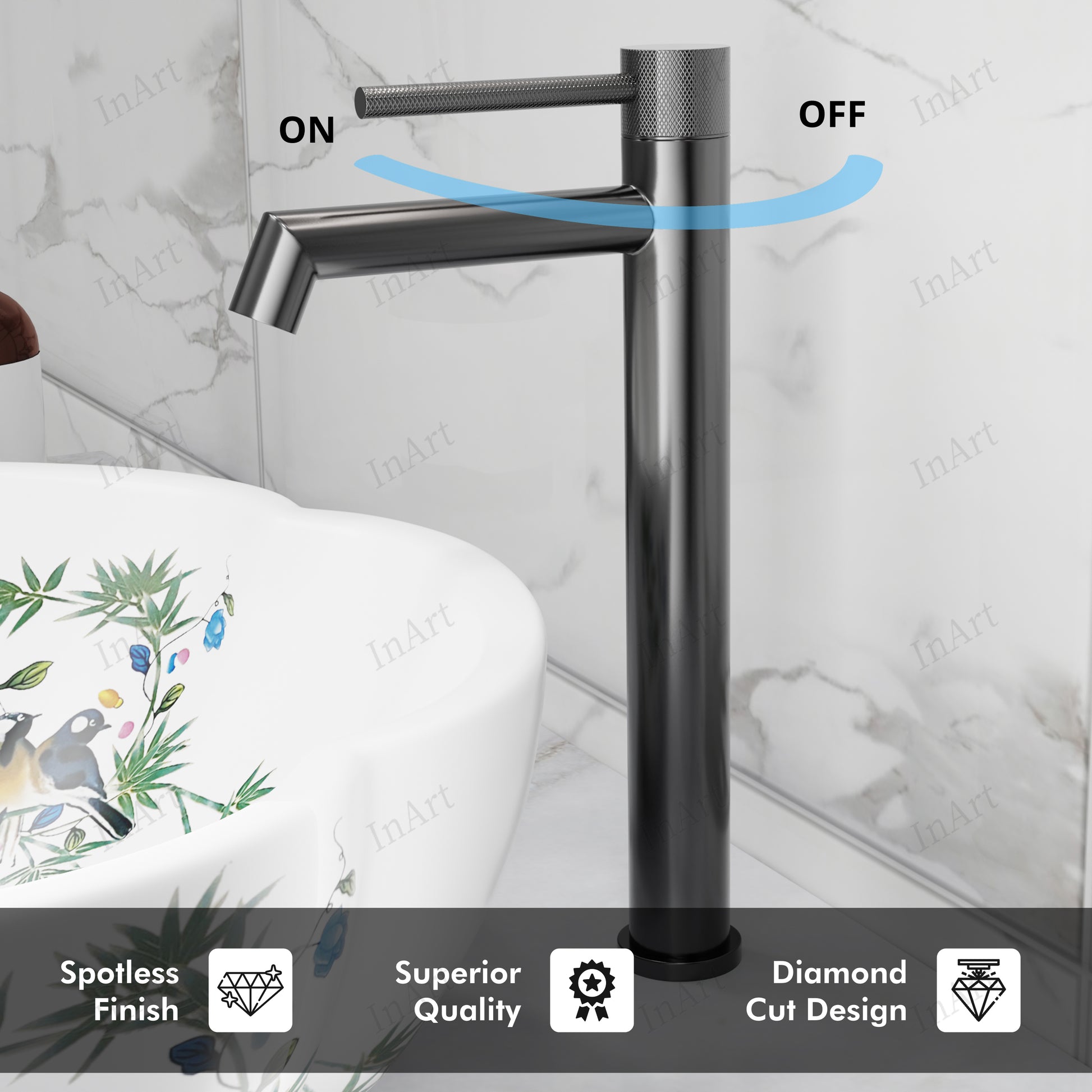 The InArt® SS-304 Extra Tall Pillar Tap in Gun Grey combines modern aesthetics, superior strength, and flawless performance. Crafted for table top and counter top wash basins, this long high-neck faucet enhances your bathroom with a sleek designer finish and functional innovation.