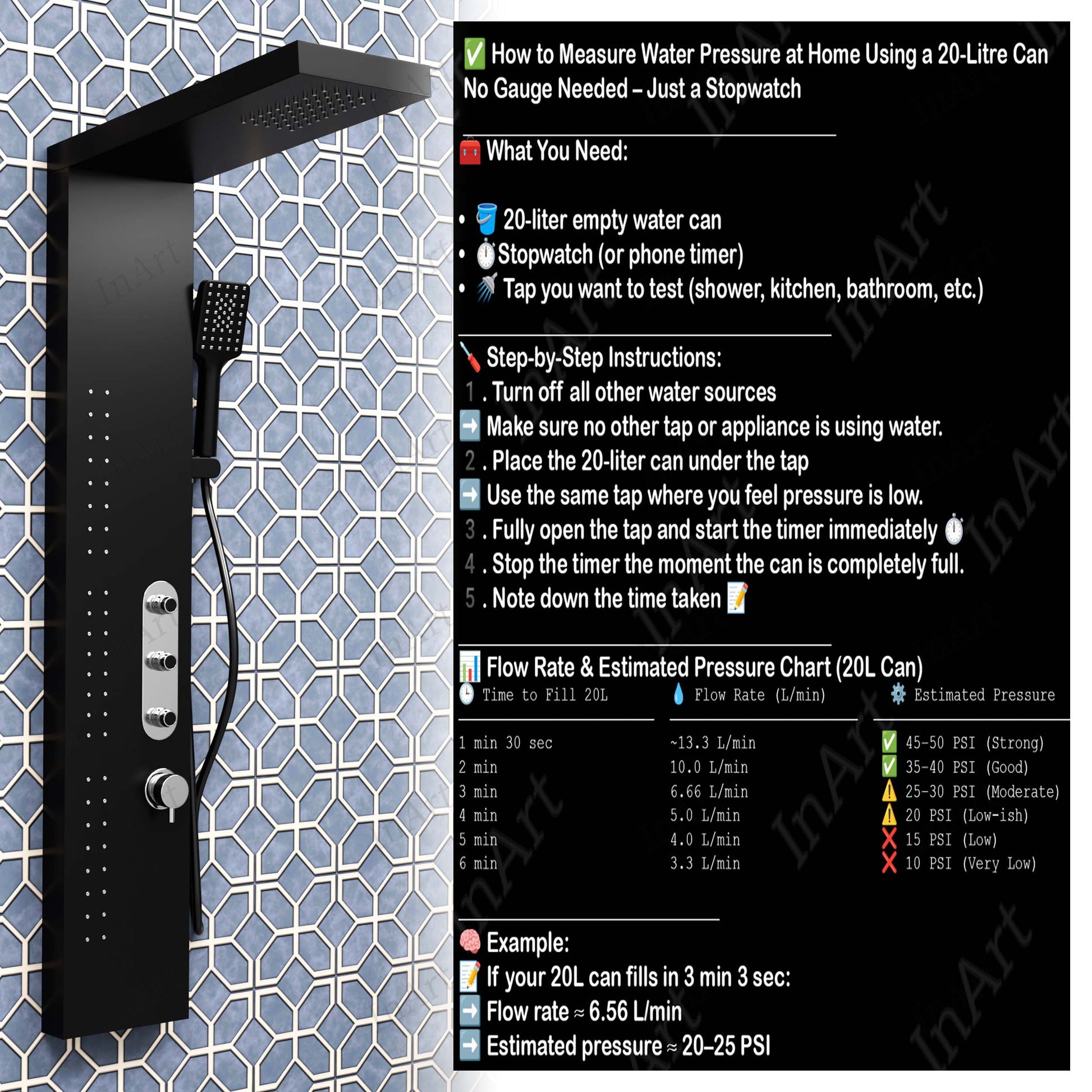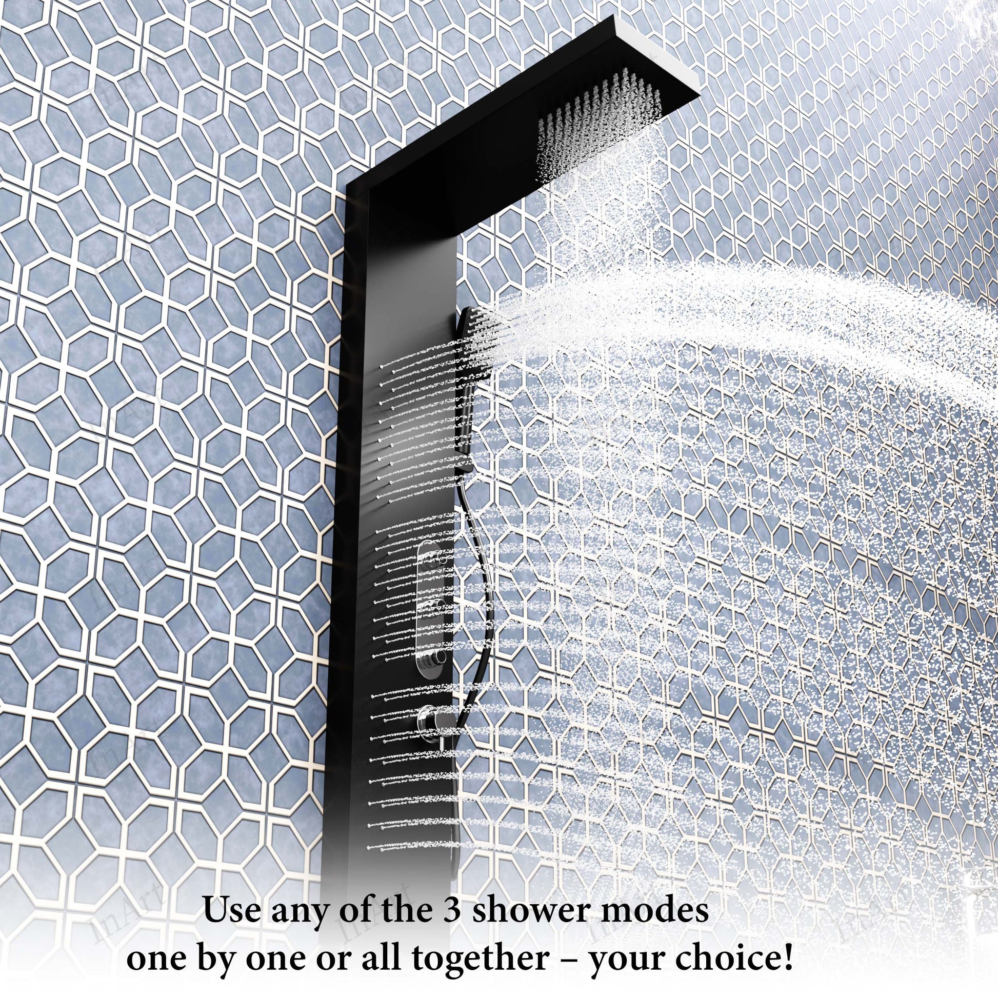 - Multi-Function Shower Panel: Experience the perfect blend of style and functionality with three modes: Rainfall, Massage Jets, and Handheld Shower Head for a relaxing and invigorating shower experience.