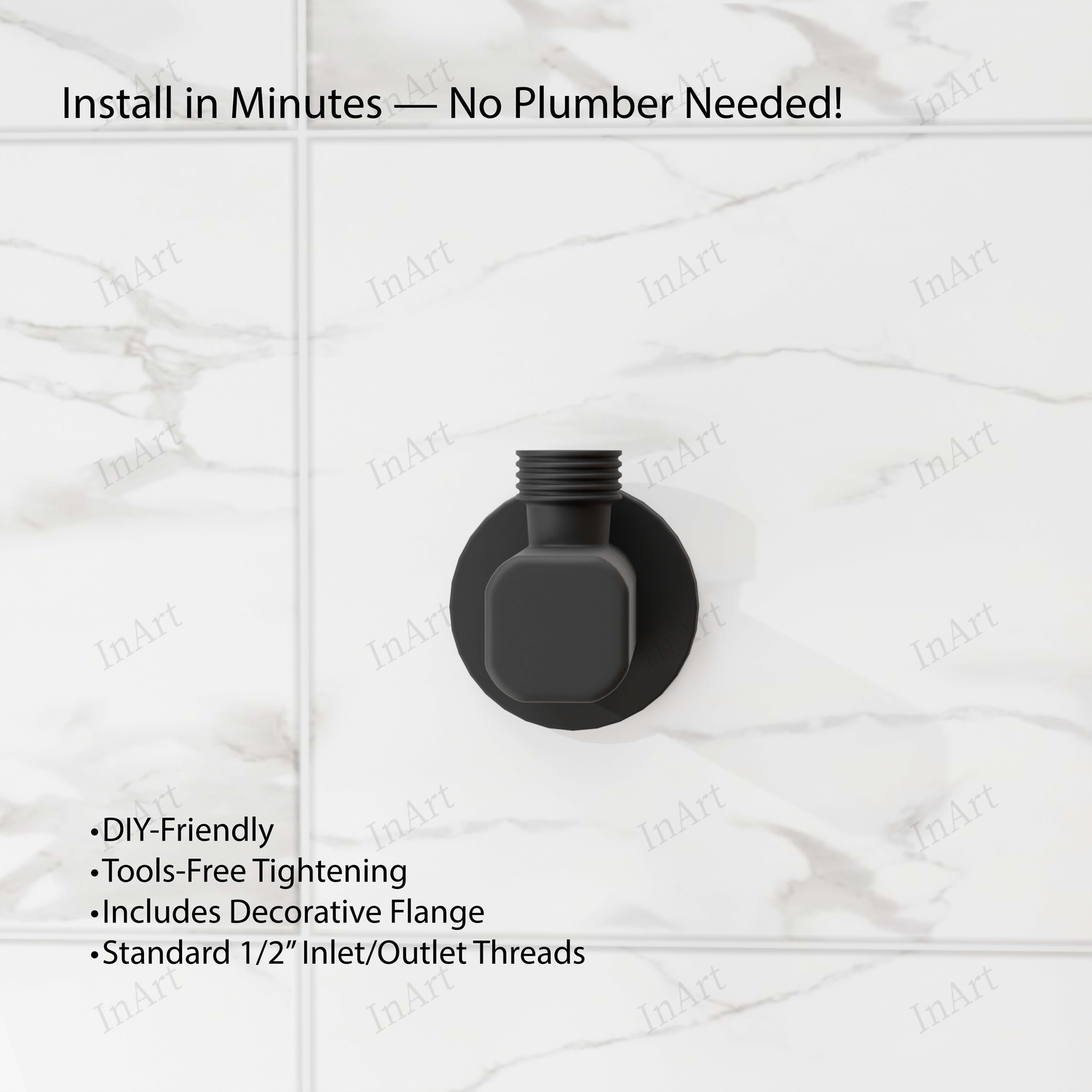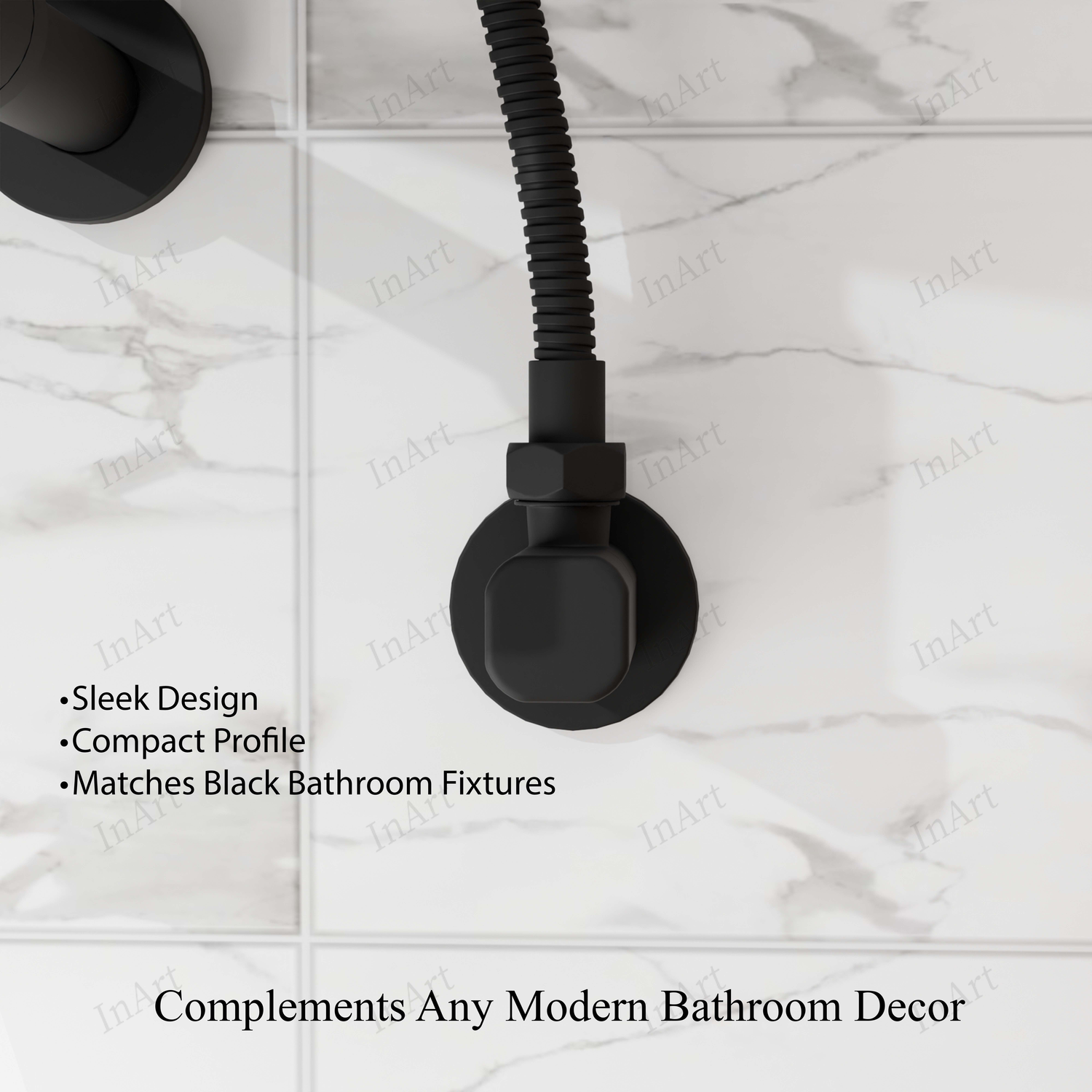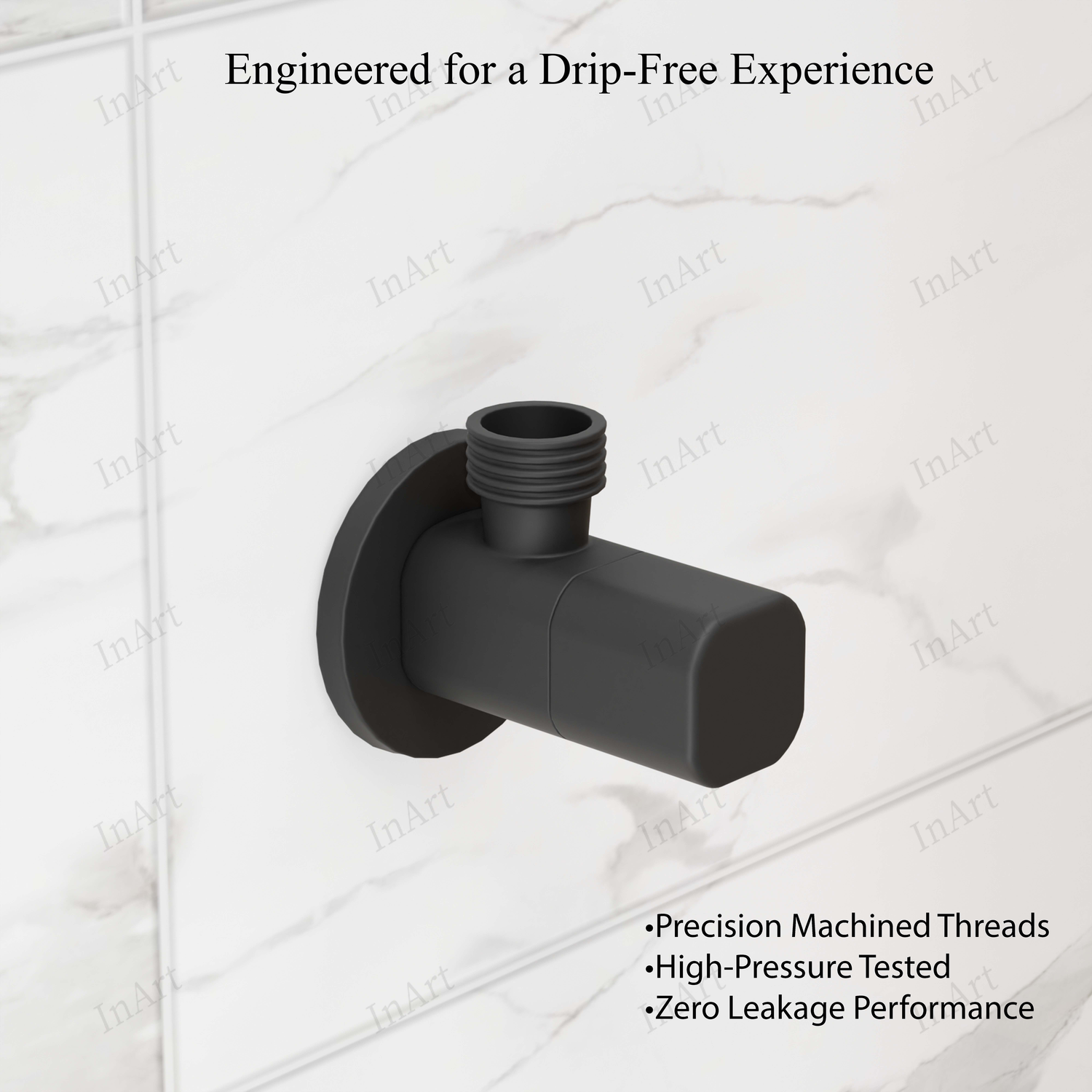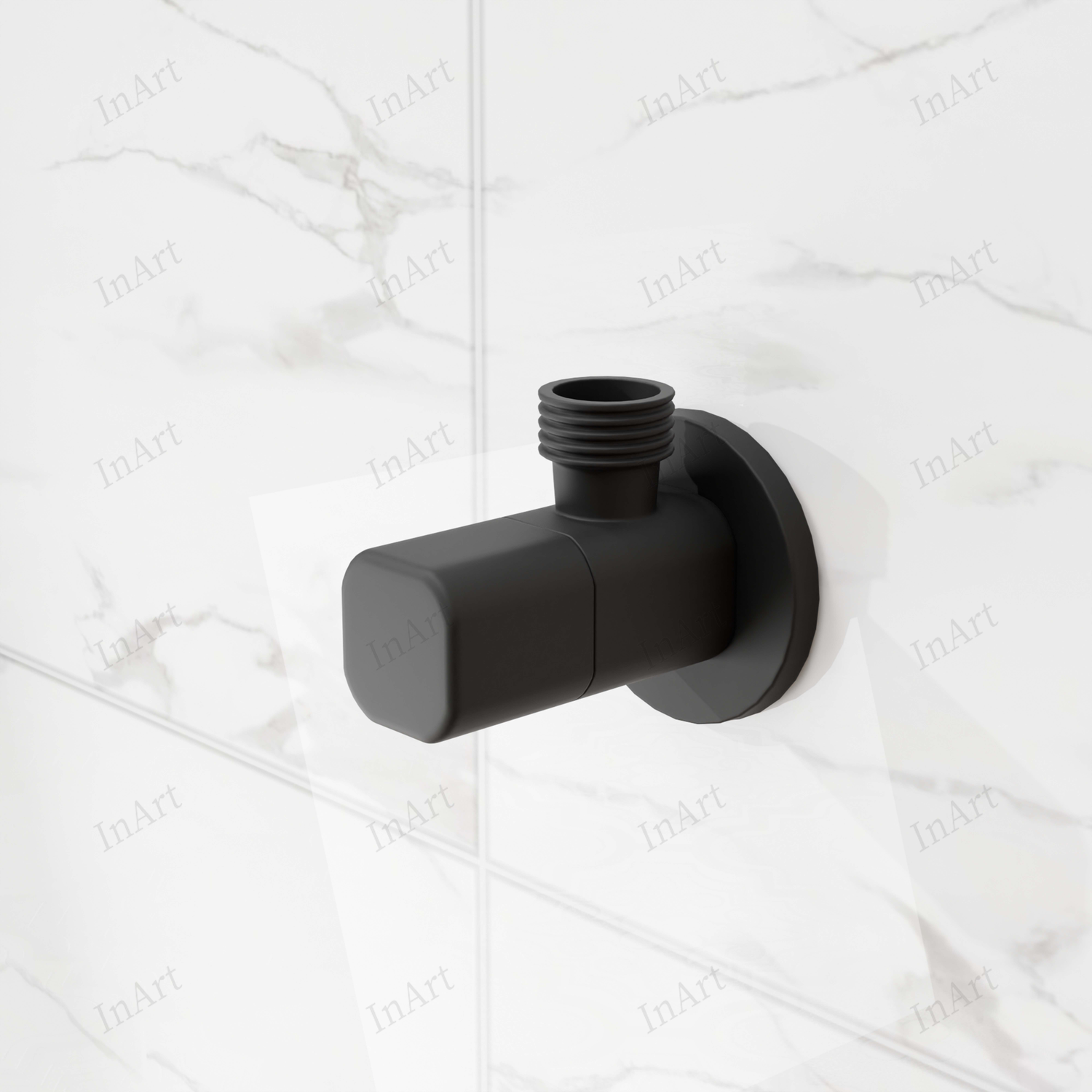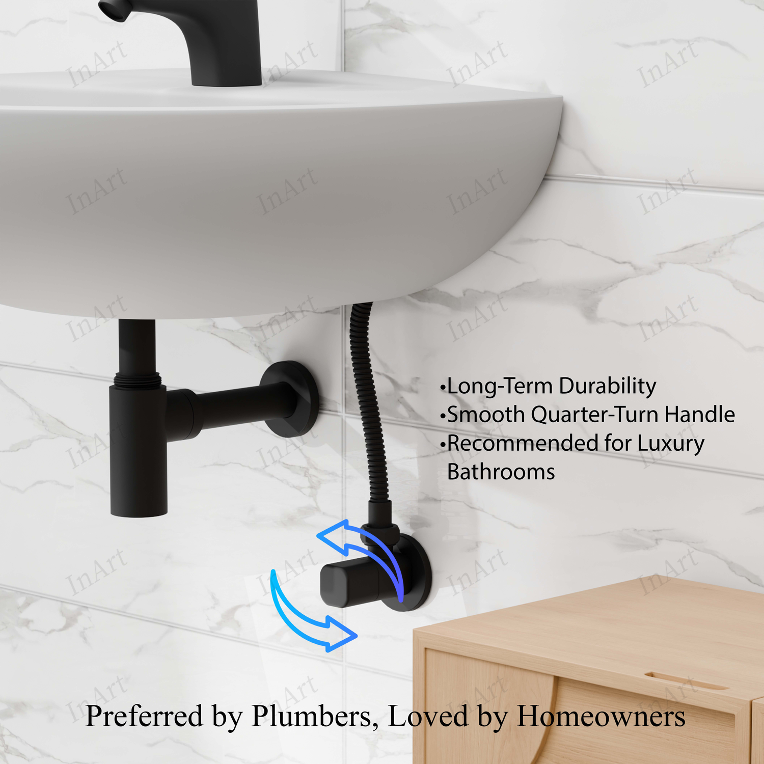 InArt Brass Angle Valve – 1/2" Stop Cock with Flange for Bathroom & Kitchen, Leak-Proof Ceramic Cartridge, 30 Bar Pressure Tested | Black Matt & Gold | BA024