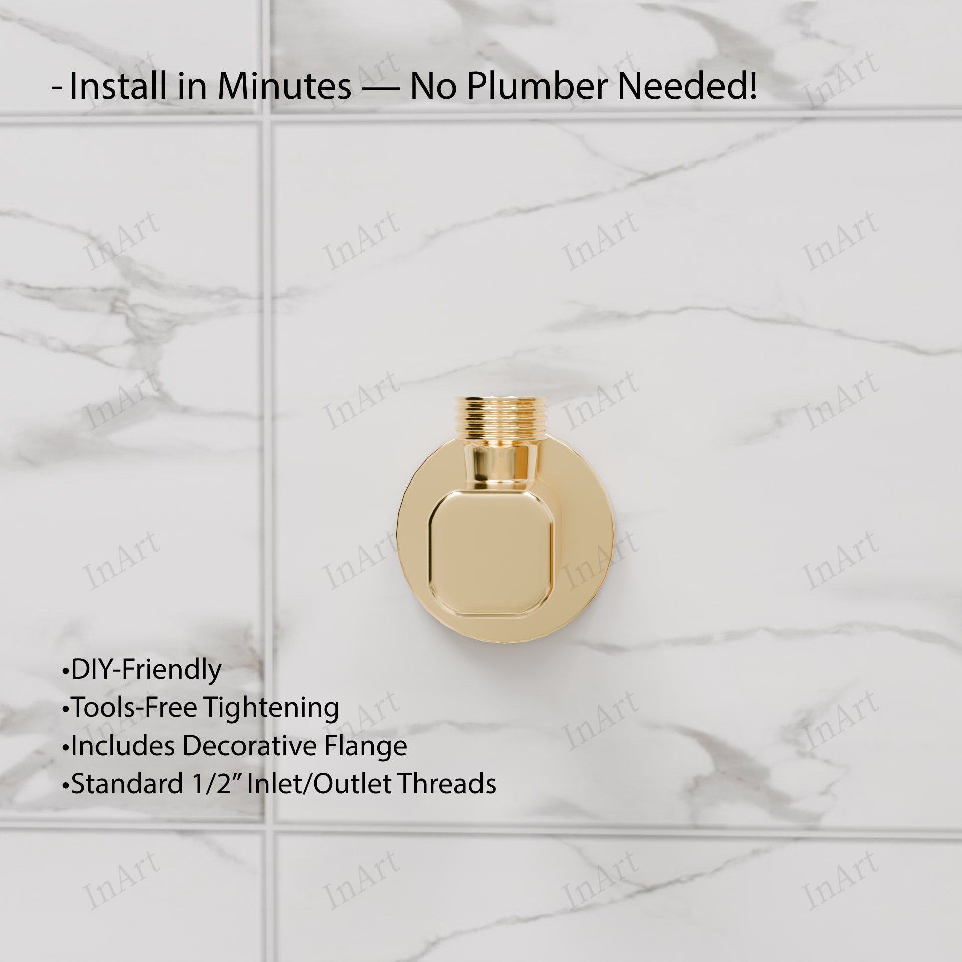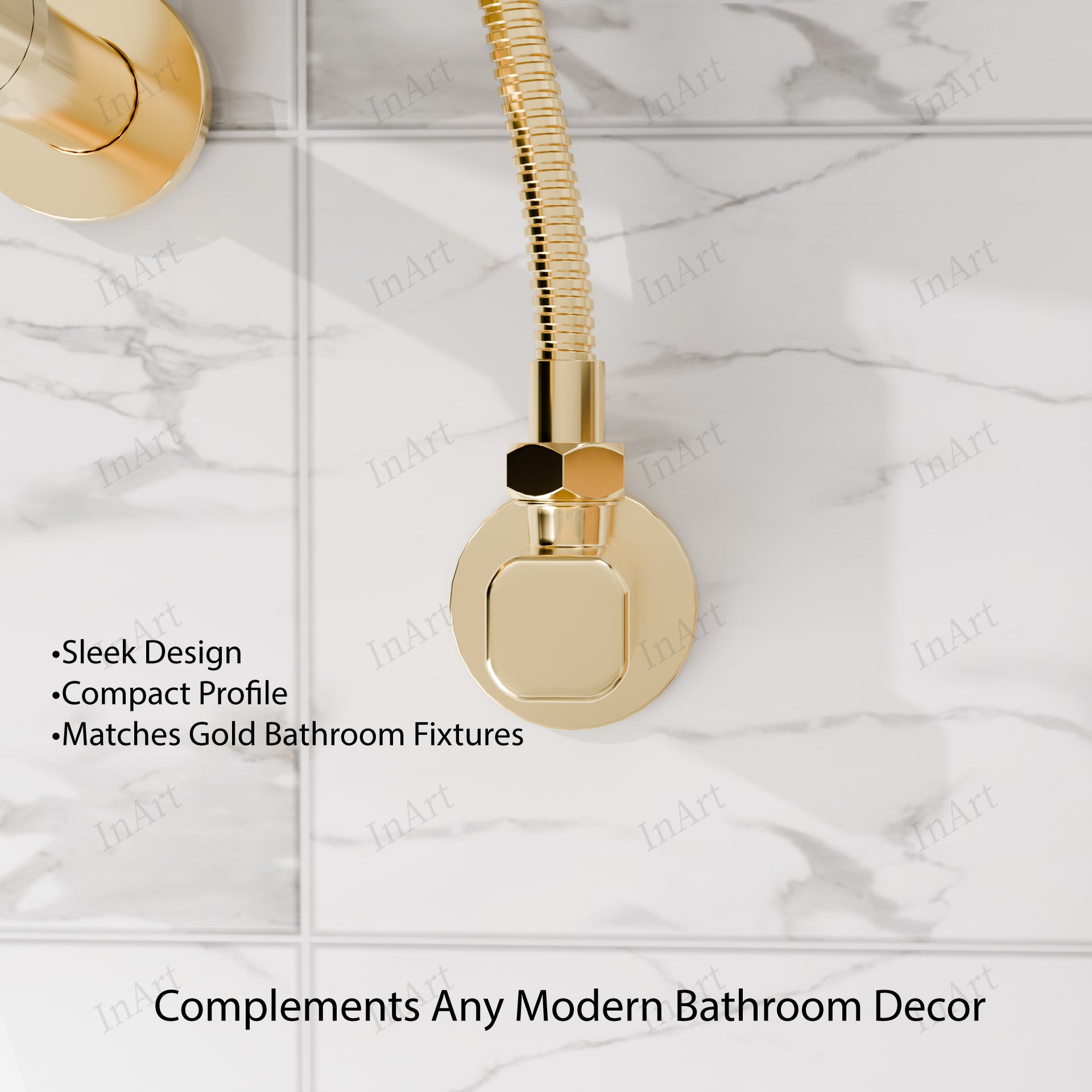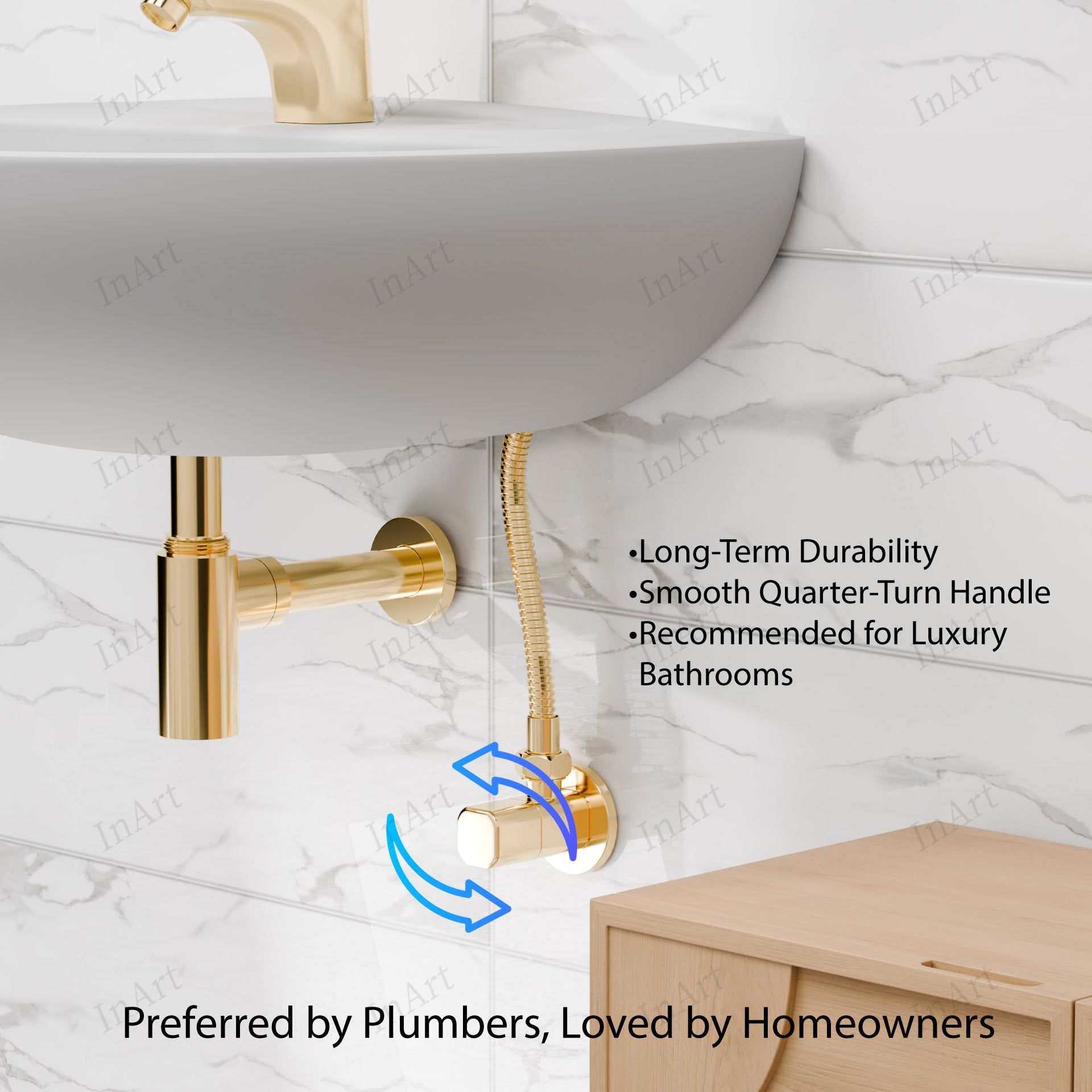 InArt Brass Angle Valve – 1/2" Heavy-Duty Stop Cock with Flange | Leakproof Brass Body for Bathroom, Kitchen, Geysers & Toilets | Gold Finish | BA024
