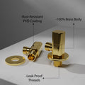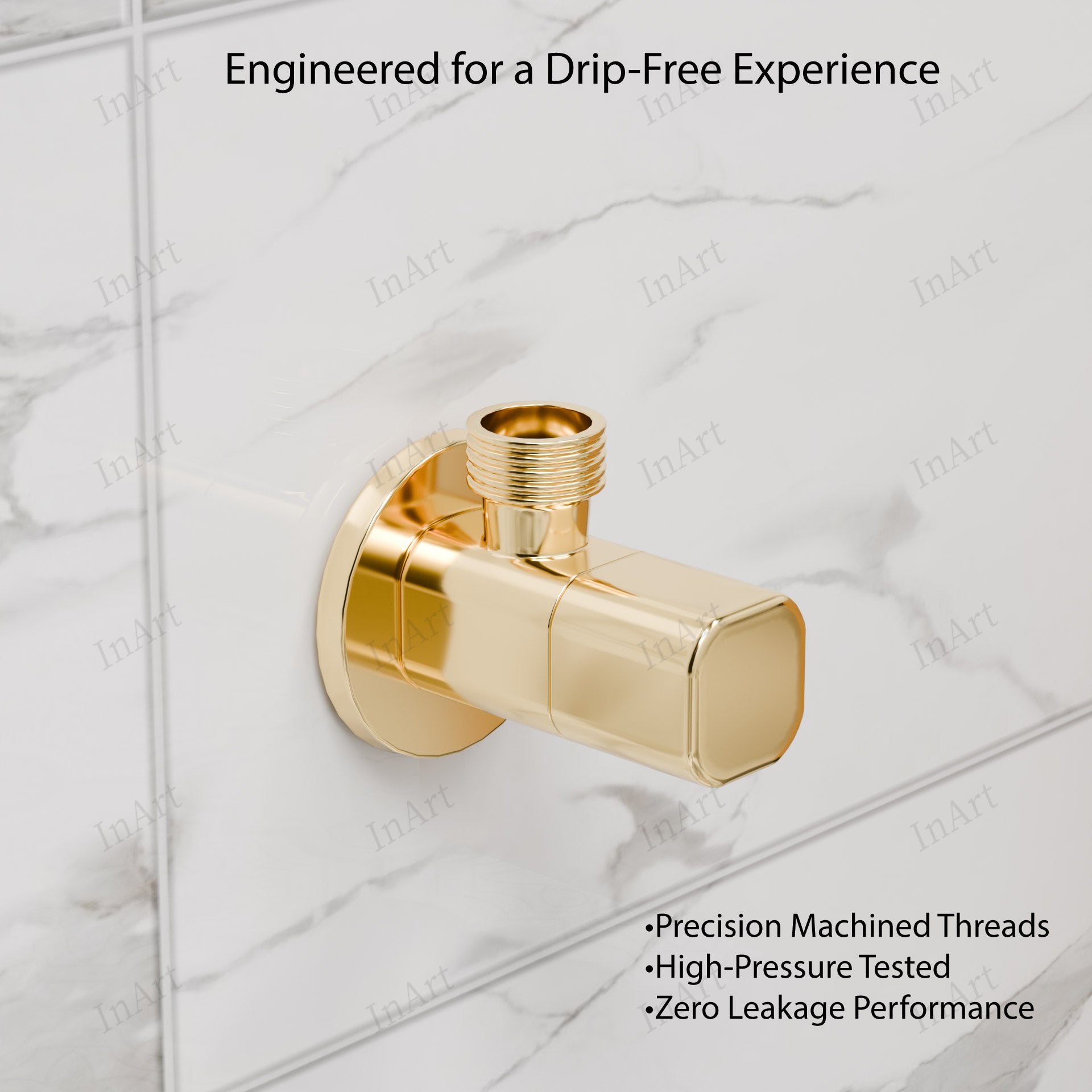InArt Gold Brass Angle Valve is a premium, 100% solid brass stop cock designed to offer both visual elegance and lasting performance. Its gold-plated finish adds a luxurious accent to your bathroom or kitchen, while the ceramic disc cartridge ensures drip-free and leak-proof water control. Whether you're installing in a geyser, toilet spray, sink, or washing machine inlet, this valve fits effortlessly and performs consistently.