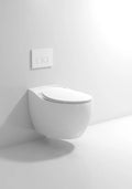 इनआर्ट सिरेमिक वॉल हैंग या वॉल माउंटेड डिज़ाइनर (क्लीन रिम) रिमलेस वॉटर क्लॉज़ेट टॉयलेट सॉफ्ट क्लोज सीट कवर के साथ सफेद रंग