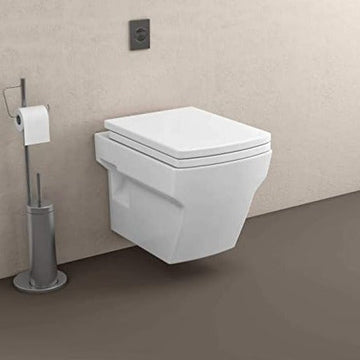 - दीवार पर लटका हुआ डिज़ाइन छोटे स्नानघर और पाउडर रूम के लिए एक आदर्श समाधान प्रदान करता है। पैकेज में दीवार पर कमोड लगाने के लिए सॉफ्ट क्लोज हाइड्रोलिक सीट कवर और रैक बोल्ट के साथ कमोड शामिल है