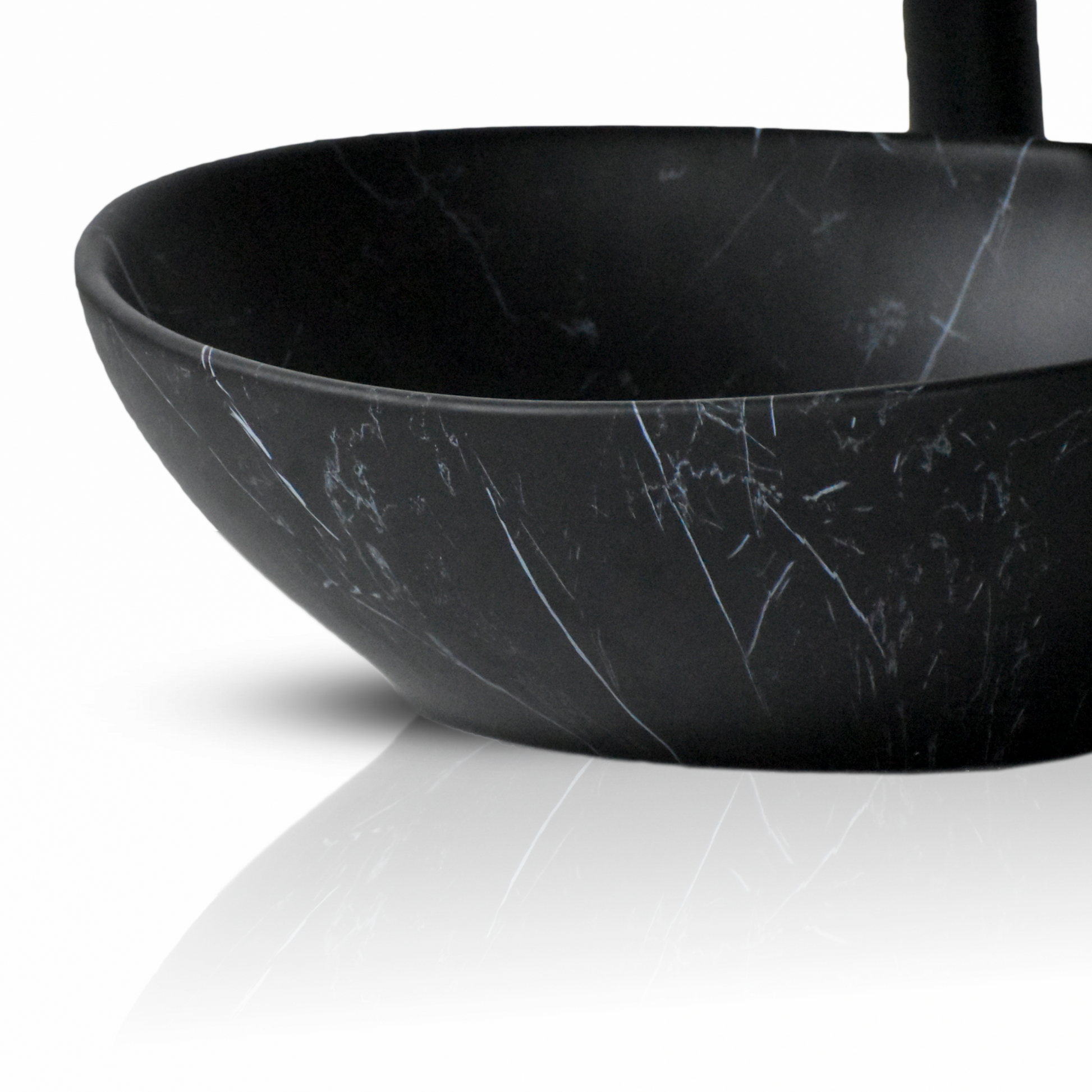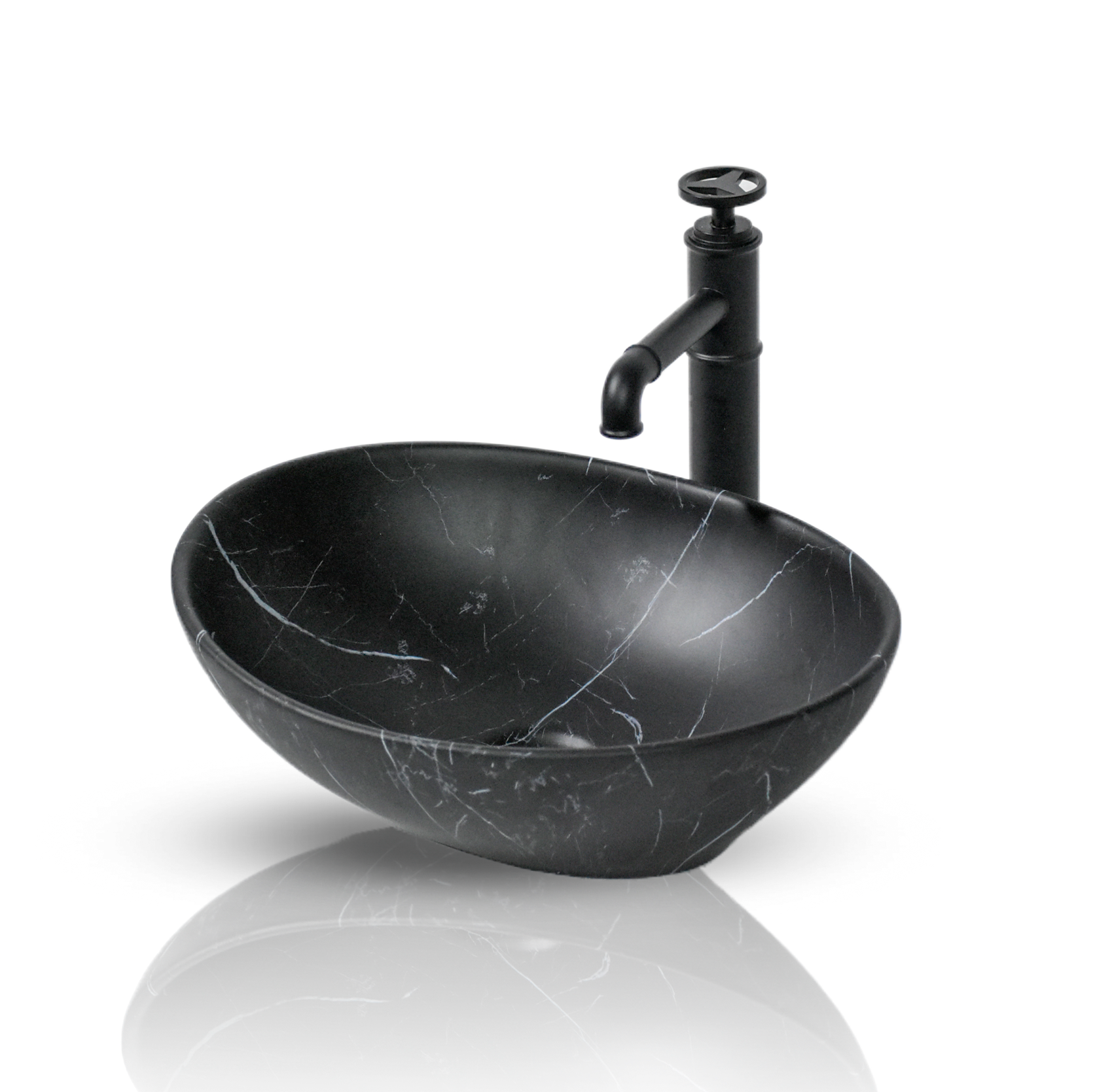 ब्लैक मैट मार्बल रंग में टेबल टॉप वॉश बेसिन ओवल