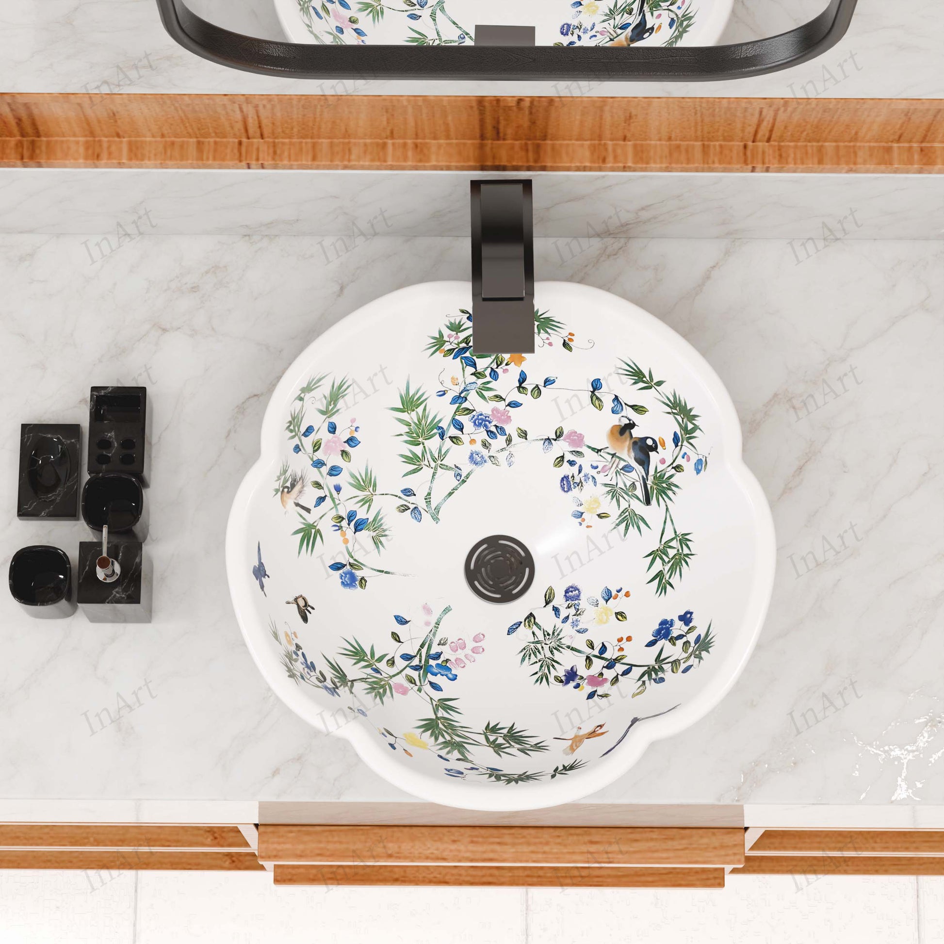 Enhance Your Space with the InArt Moroccan White Floral Ceramic Wash Basin
