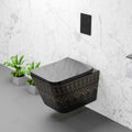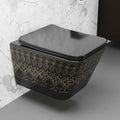InArt Black Gold Wall Hung Rimless Ceramic Commode – Modern P-Trap Western Toilet with Soft Close Seat DWH036