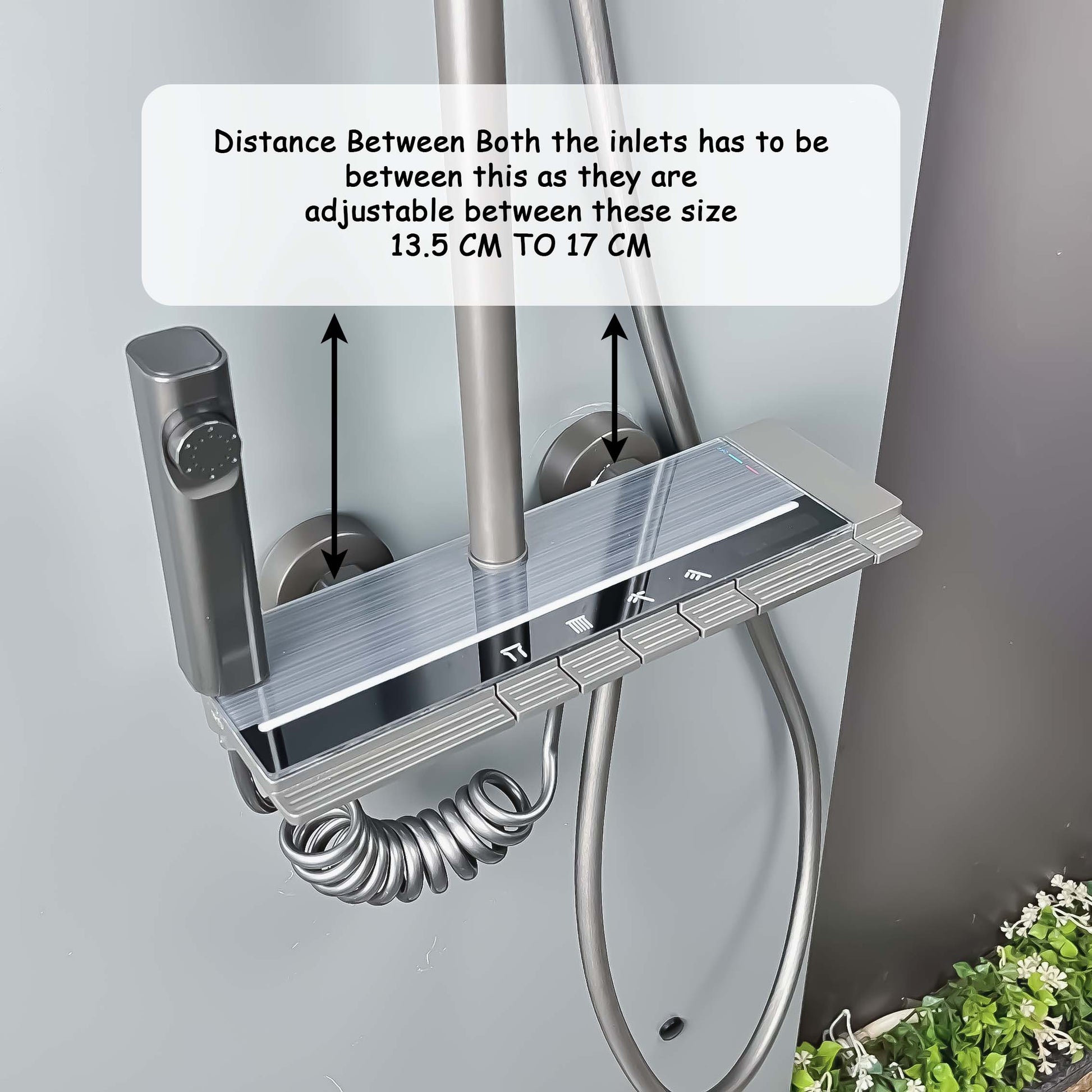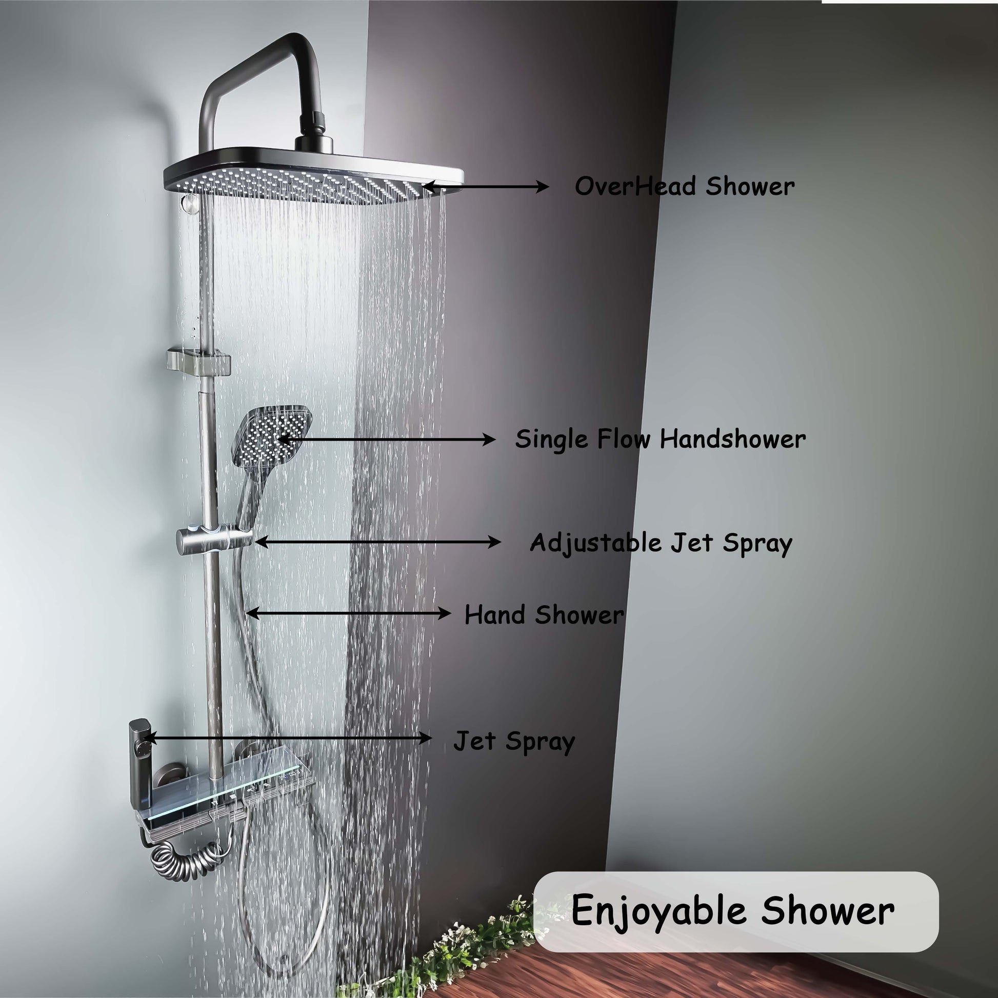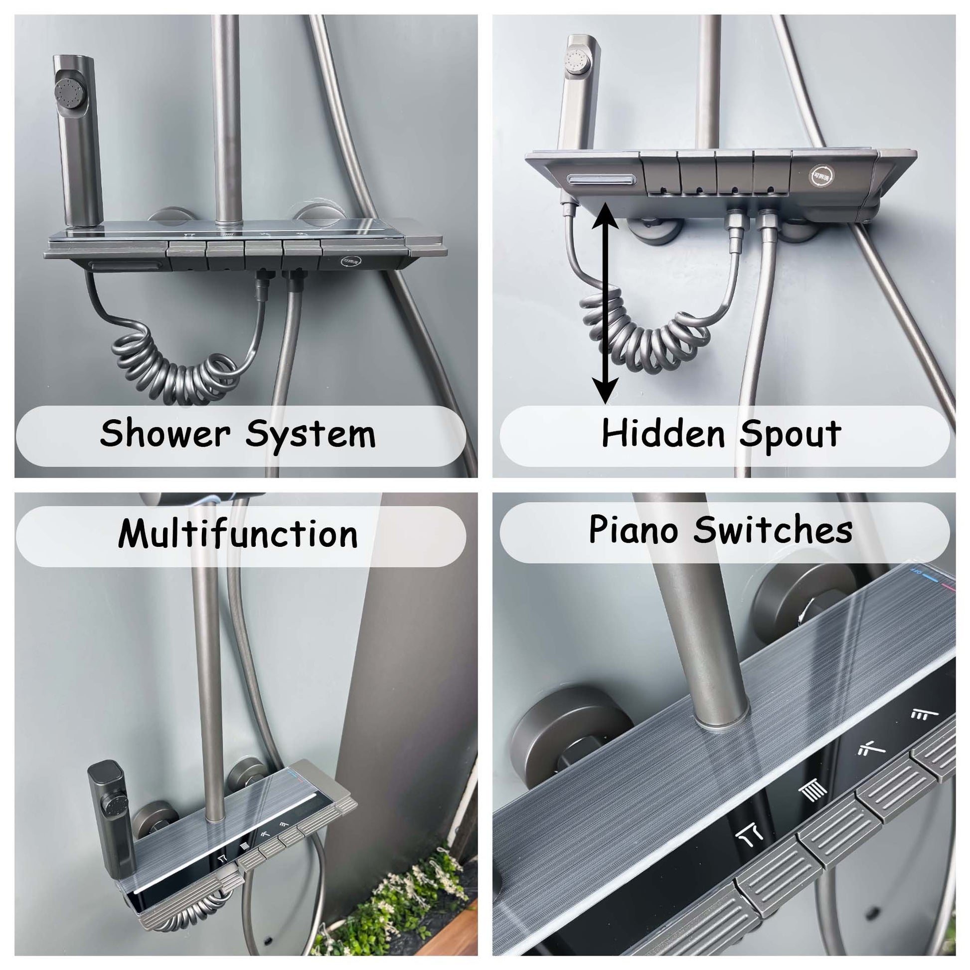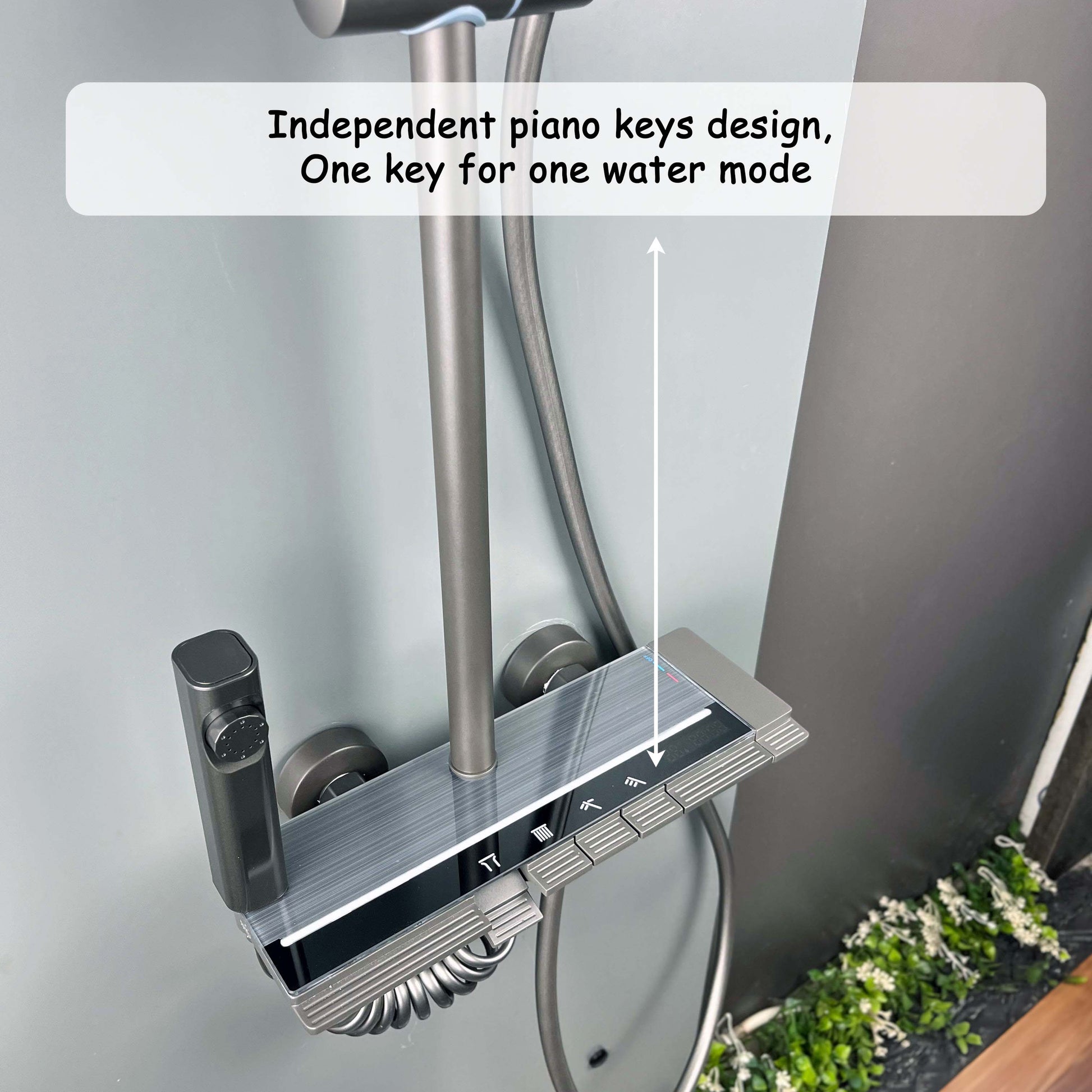 InArt Thermostatic Shower System Digital Display Shower Faucet Set Wall Mount Piano Keys Rain Shower Combo Set with 12" Shower Head, Hand Shower Spray, 2 in 1 Jet Spray, Tub Spout Gun Grey Color SP061