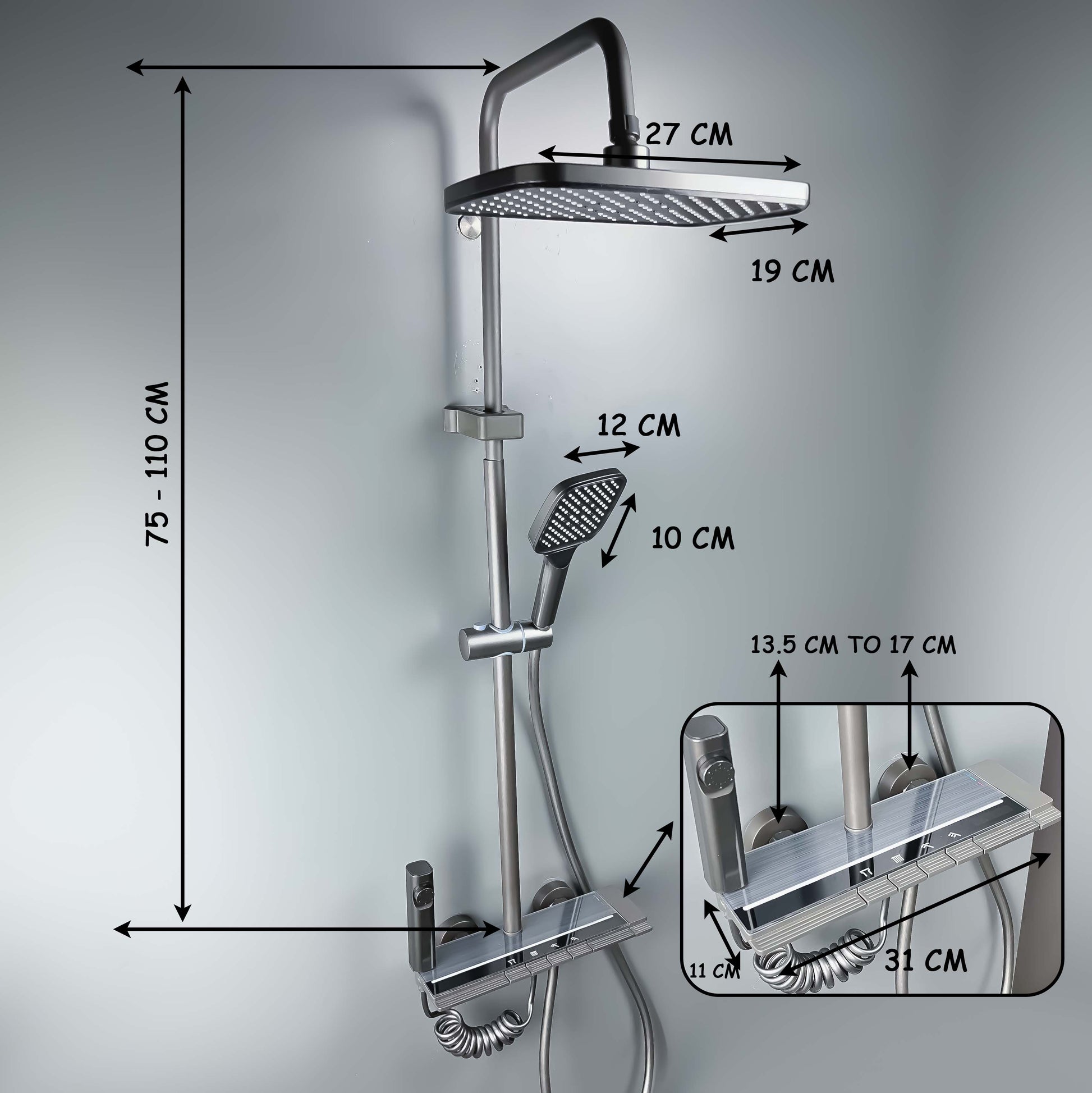 - 🌀 Constant Temperature Control: The thermostatic system, made from high-quality brass, maintains your preferred water temperature throughout your shower, eliminating the need for constant adjustments.