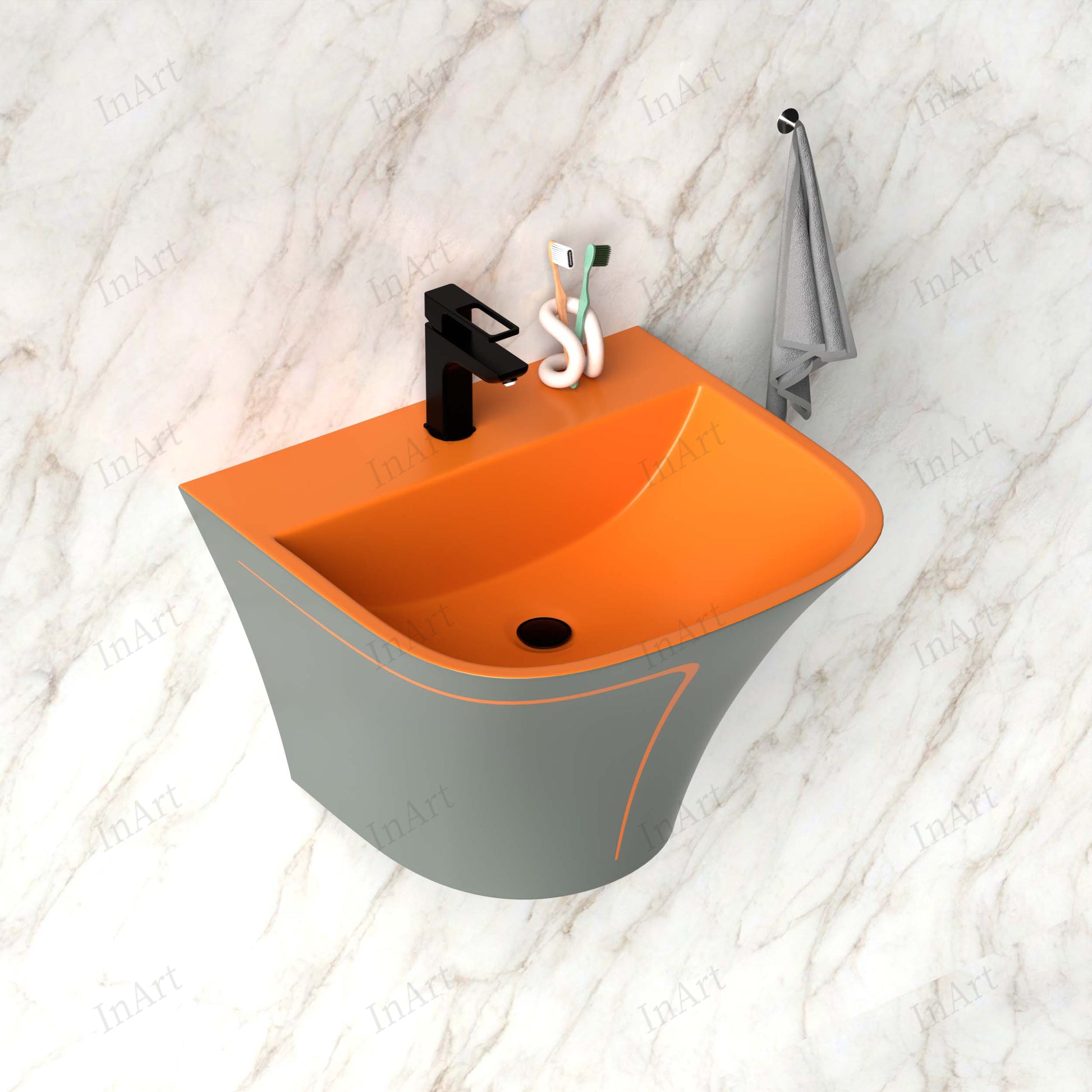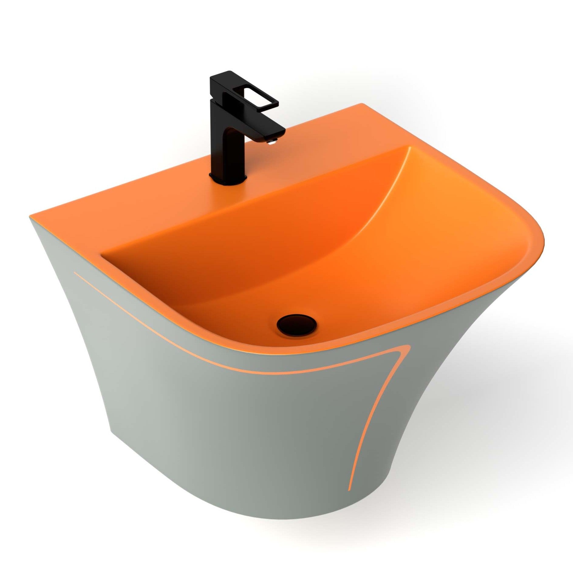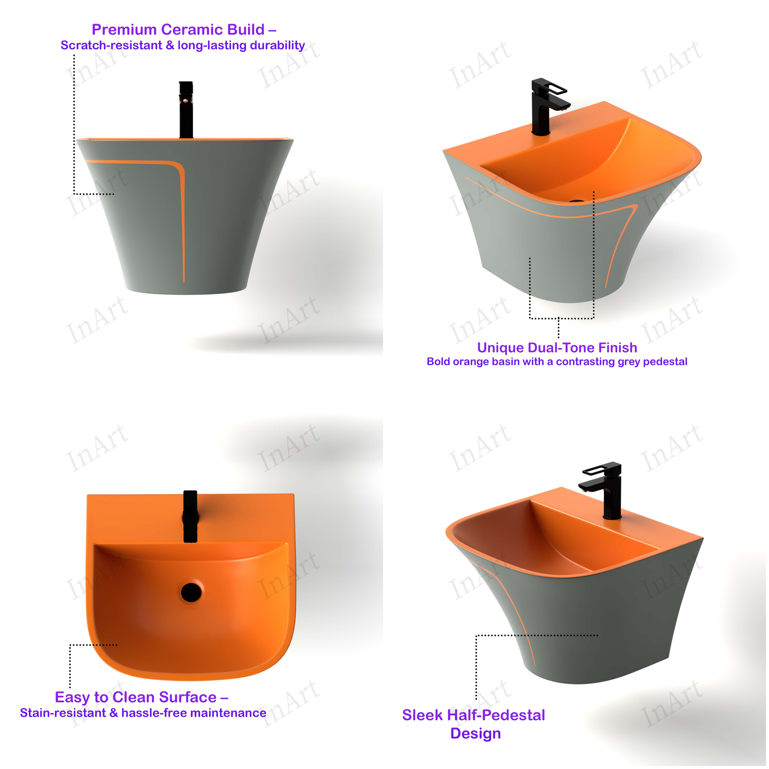 ग्रे ऑरेंज रंग मैट में सिरेमिक हाफ पेडस्टल वॉश बेसिन