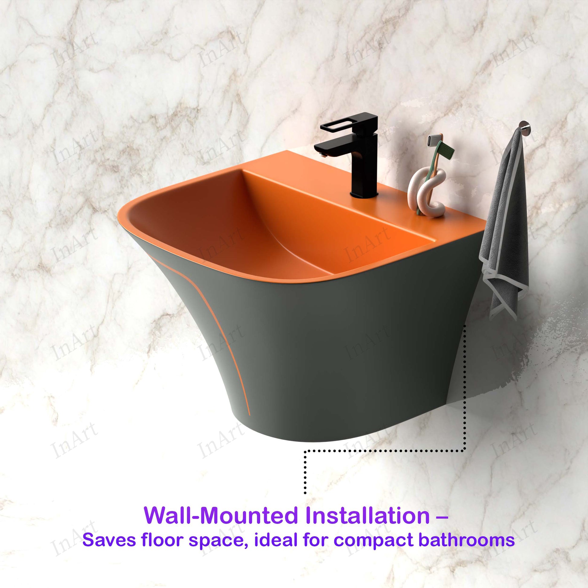 इनआर्ट वॉल हंग हाफ पेडस्टल सिरेमिक वॉश बेसिन/वेसल सिंक 49.5x 44 सीएम ग्रे मैट