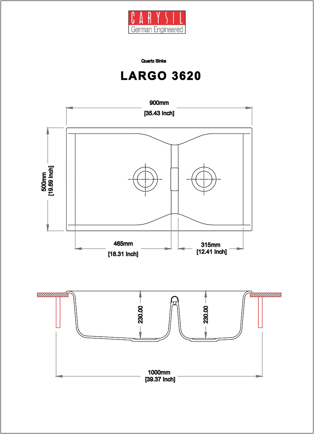 Carysil Granite Quartz Kitchen Sink - Double Bowl Largo 3620 36" x 20" Inch QKS003