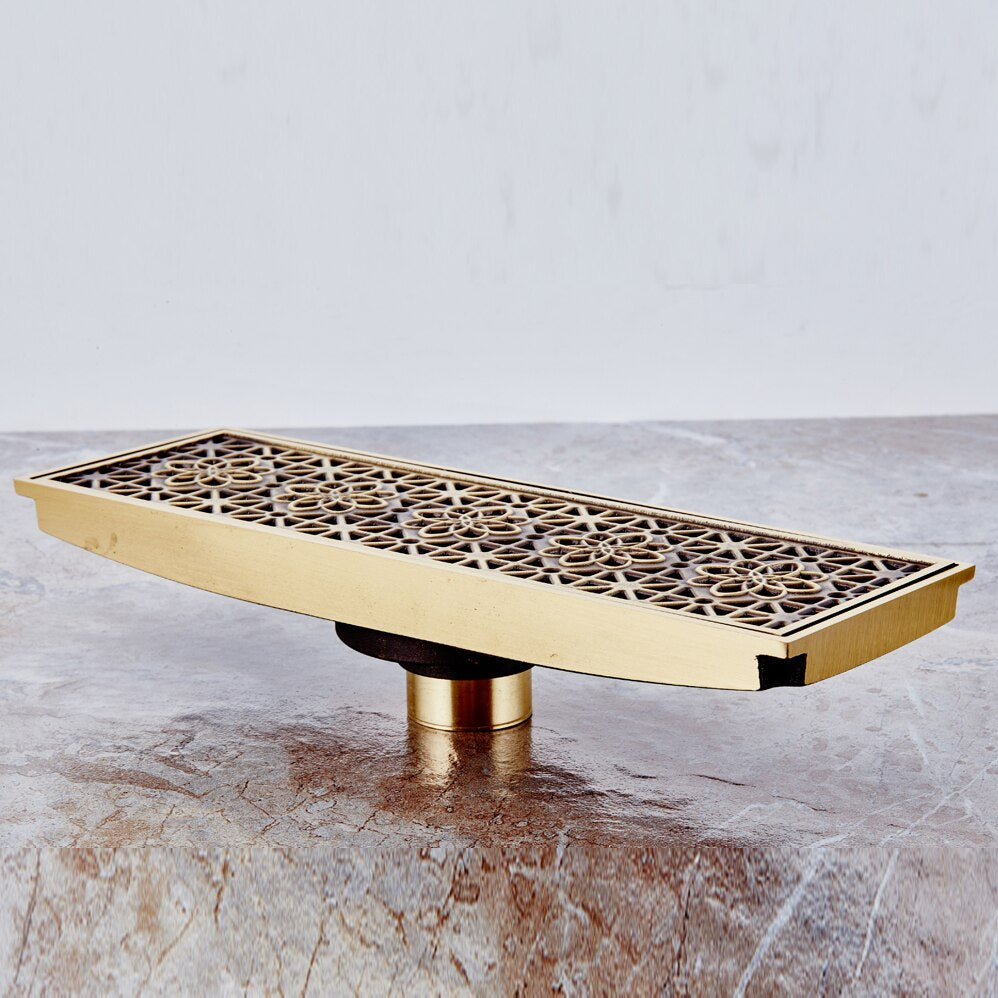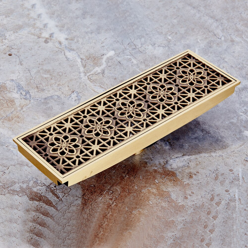 InArt Brass Antique Finish Floor Bathroom Water Drainer Bathroom Drain Grating with Anti-Foul Cockroach Trap 12 x 4 Inch Antique Color BD017