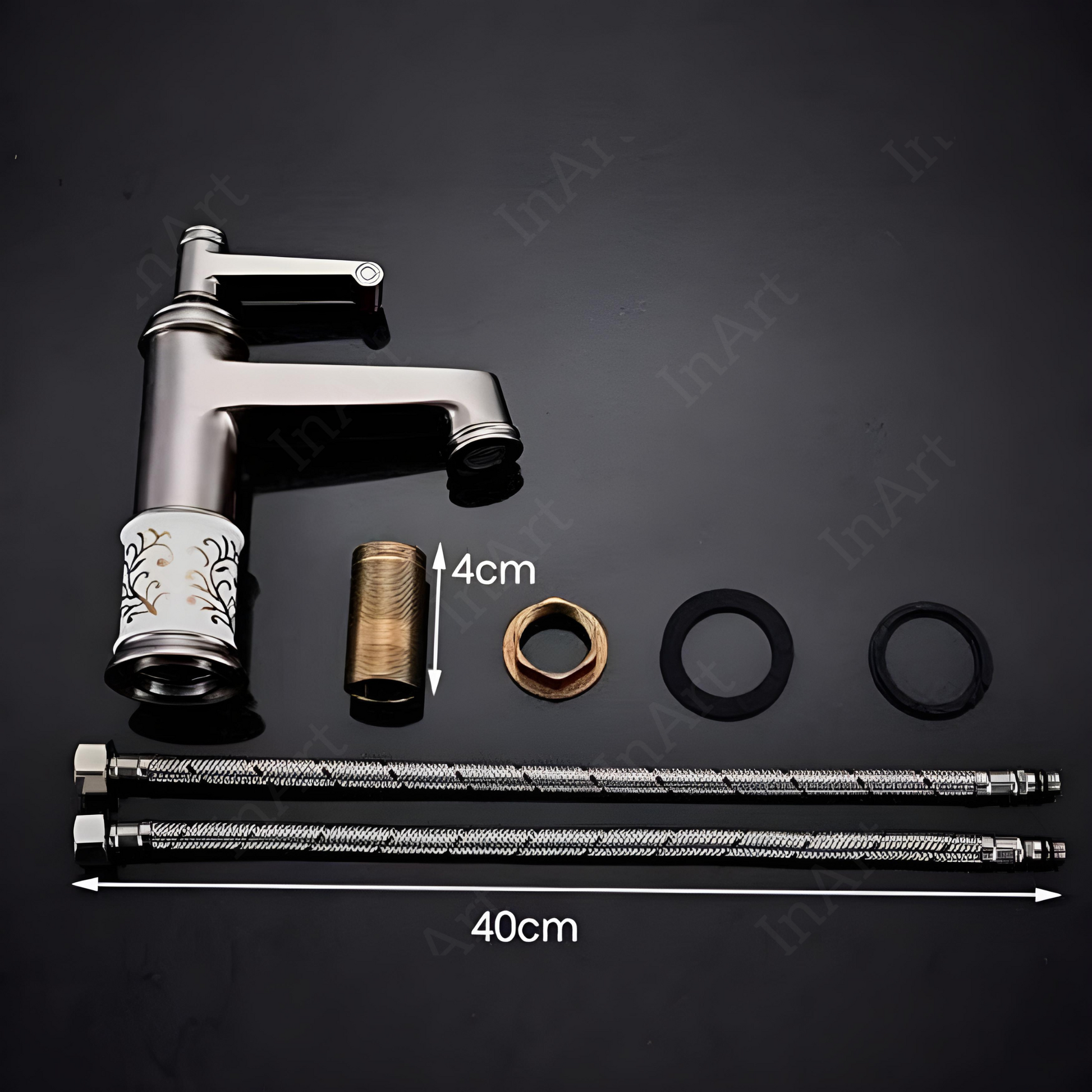 Add a touch of elegance to your home with the InArt Brass Single Lever Basin Mixer in Silver White. Featuring premium craftsmanship, innovative technology, and easy maintenance, it is the perfect blend of style and functionality.