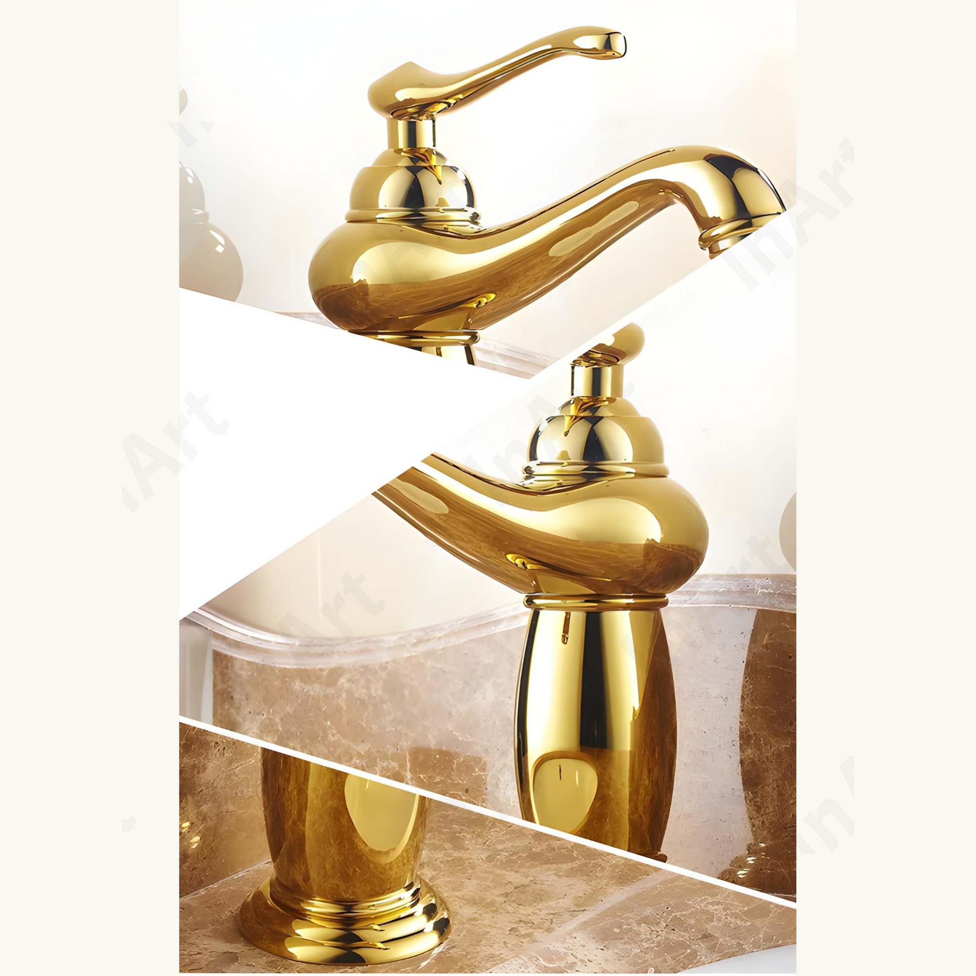 Add a touch of elegance to your home with the InArt Brass Single Lever Basin Mixer in Gold. Featuring premium craftsmanship, innovative technology, and easy maintenance, it is the perfect blend of style and functionality.