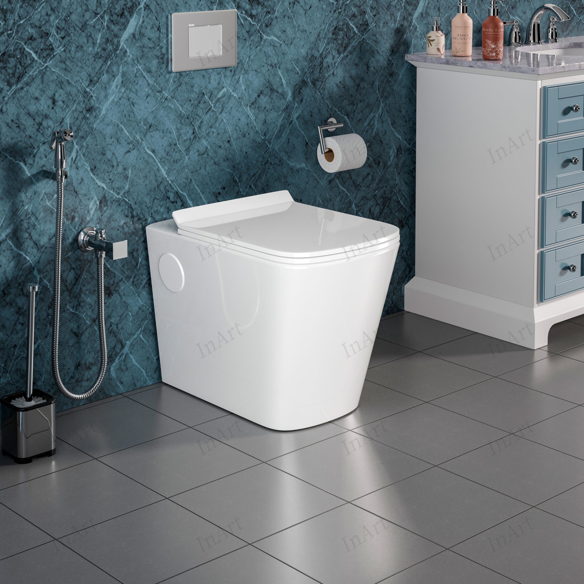 Enhance your bathroom experience with the InArt Ceramic Floor Mounted Toilet, designed to offer maximum comfort and a touch of elegance to your space. Order now and transform your bathroom into a haven of comfort and style.