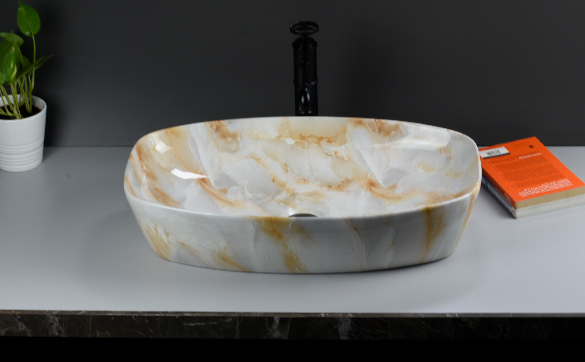 InArt Ceramic Counter or Table Top Wash Basin Glossy Onyx Marble 60 x 37 CM - InArt-Studio