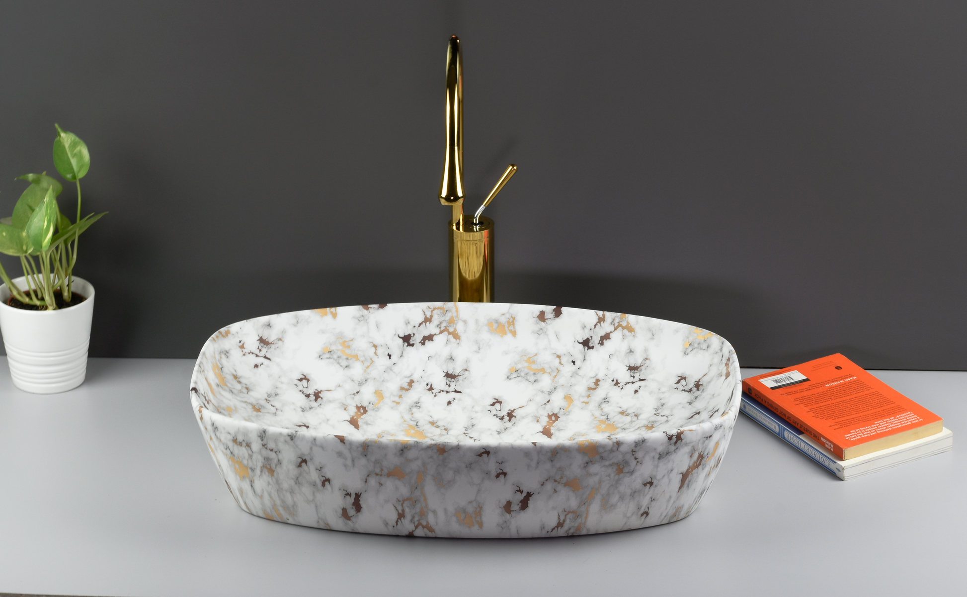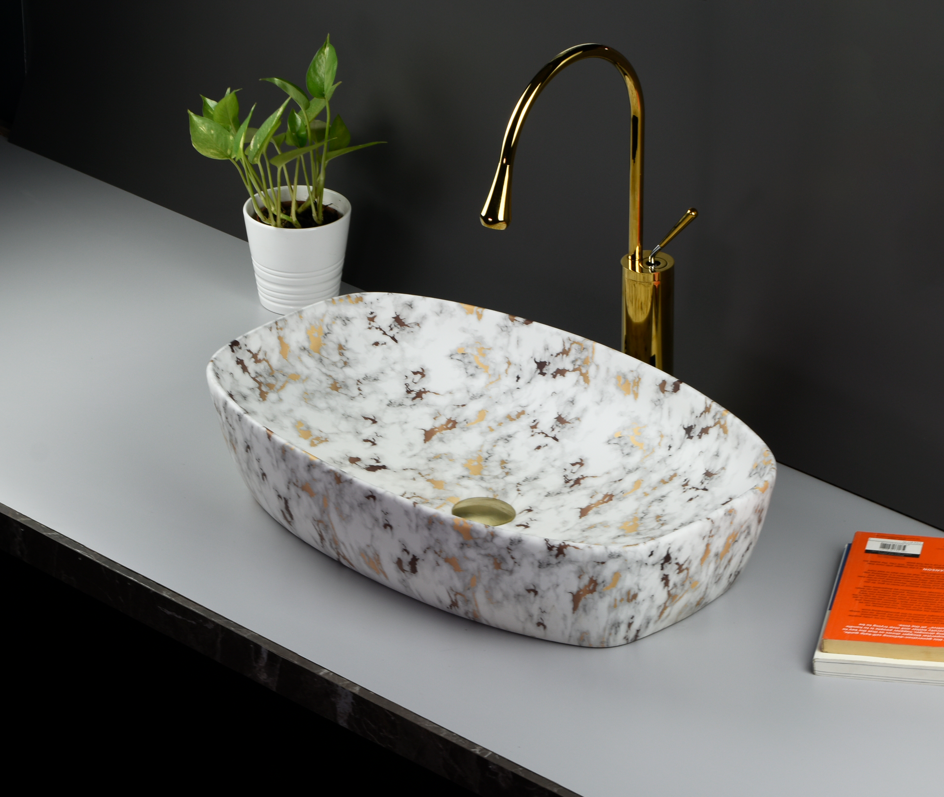 InArt Ceramic Counter or Table Top Wash Basin Matt White Gold Marble 60 x 37 CM DW320