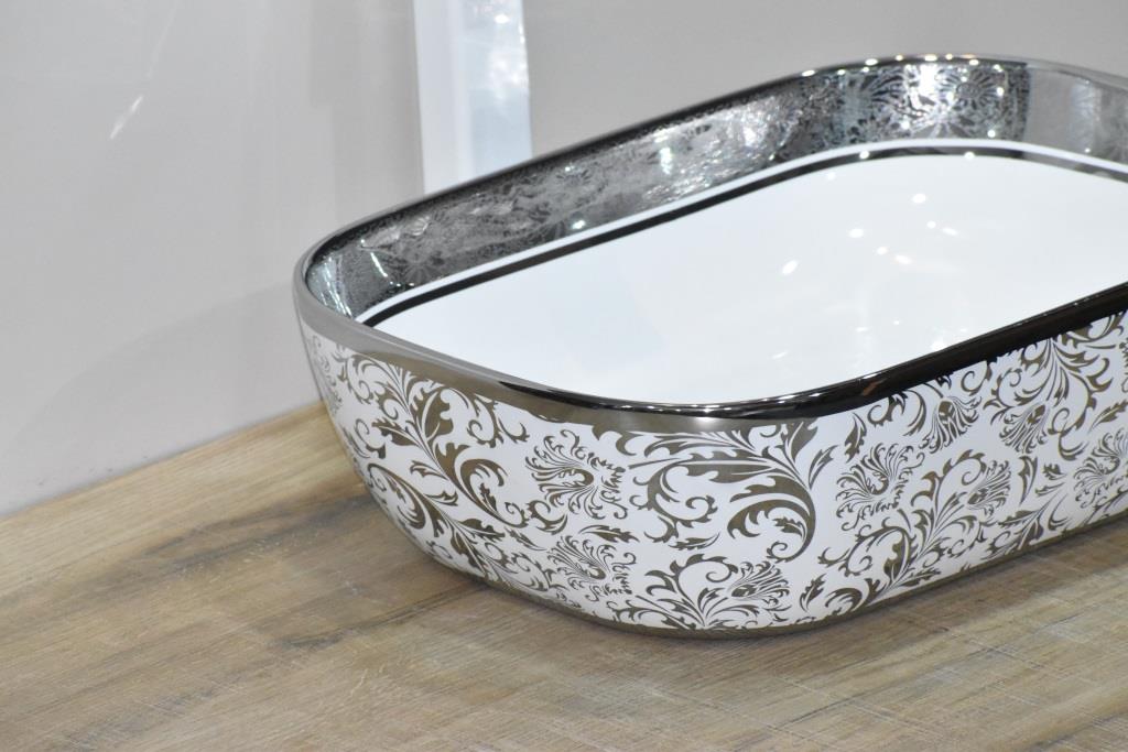 InArt Ceramic Counter or Table Top Wash Basin Silver White 46x33 CM DW195