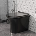 InArt Comfort Height Rimless Back to Wall Western Toilet – Glossy Black Ceramic | Soft Close Seat | 4" S-Trap Outlet | Floor Mounted EWC for Small Indian Bathrooms EWC040