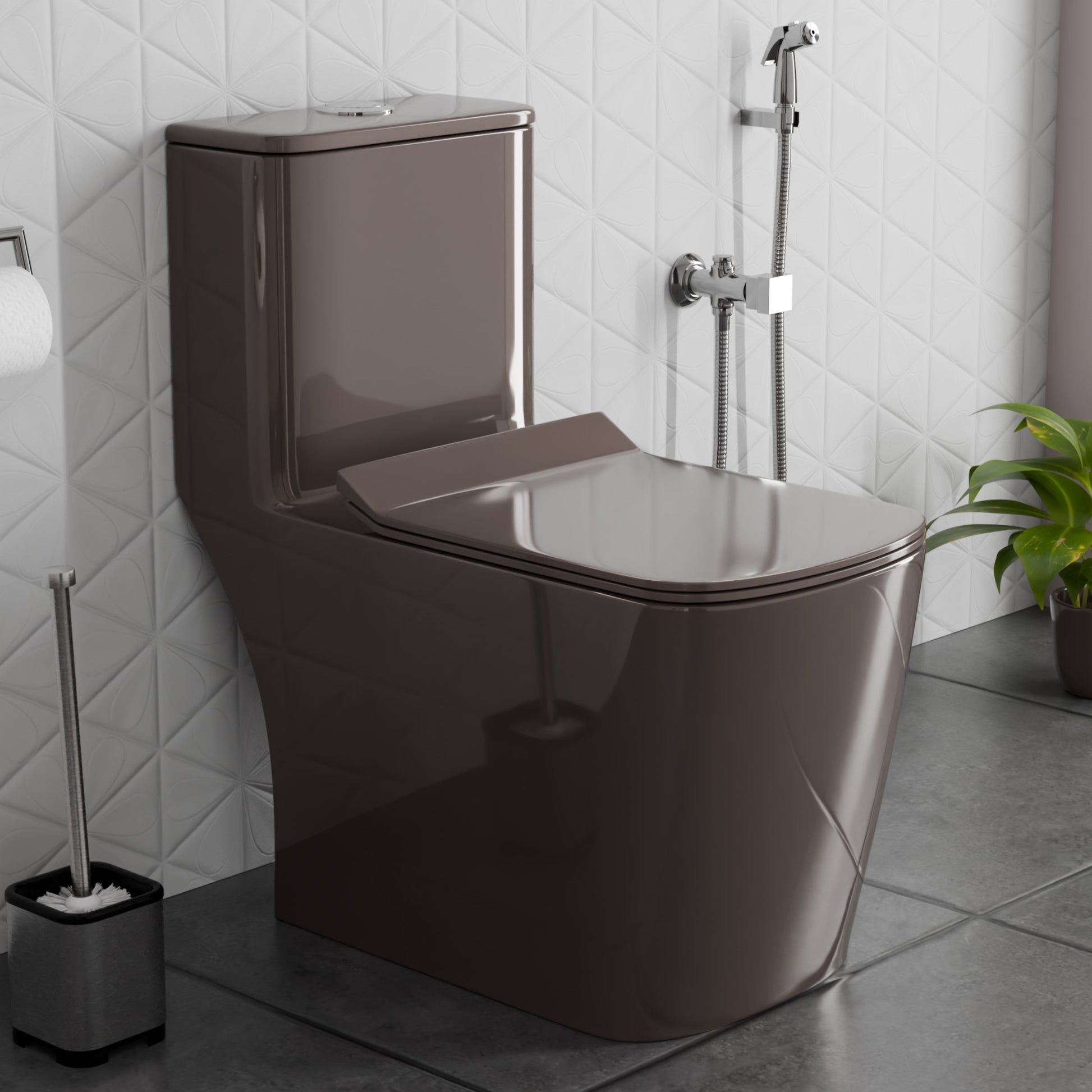 Bring an air of sophistication and warmth to your bathroom with the InArt Syphonic Ceramic One Piece Toilet in brown, blending style and functionality seamlessly.