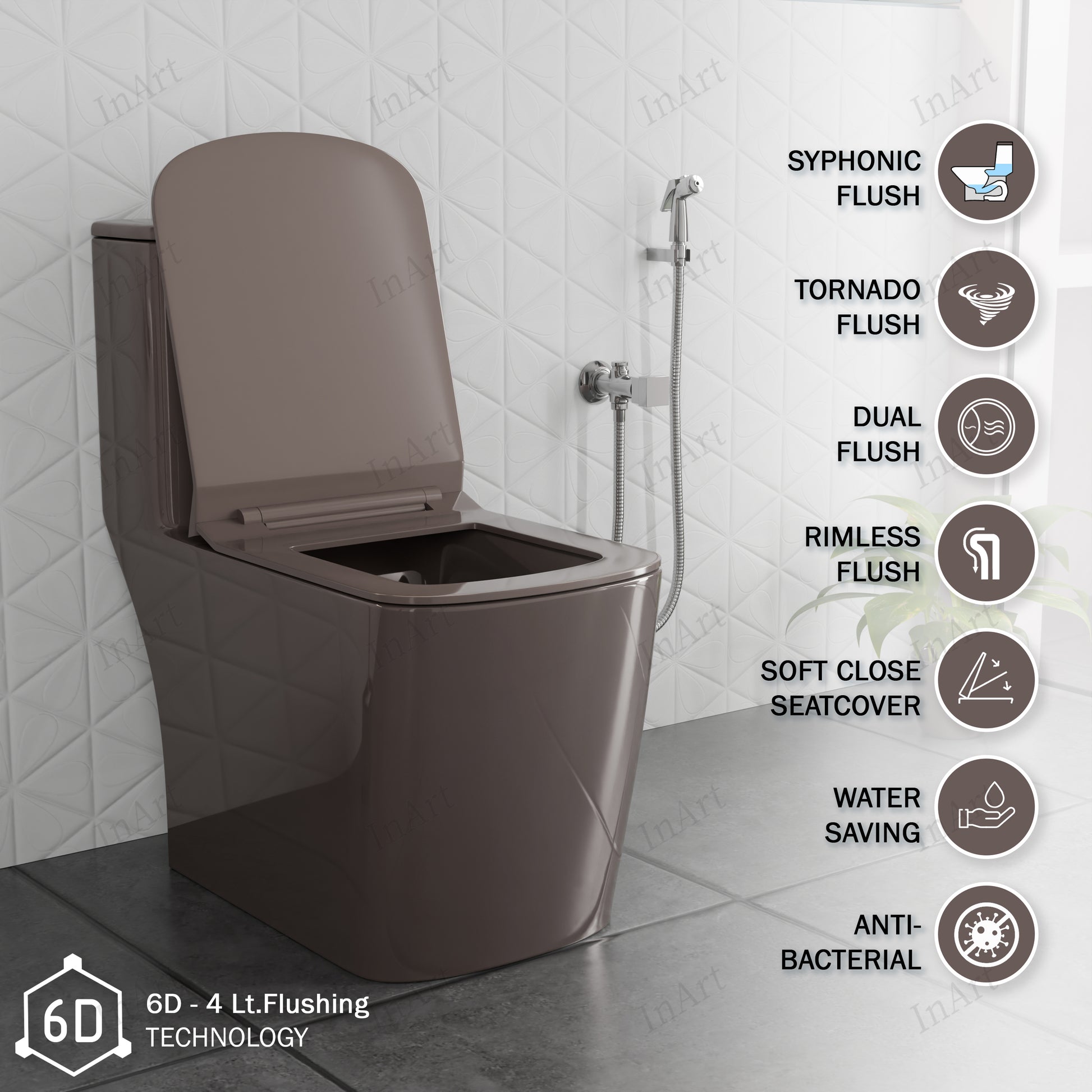 Introduce warmth and luxury to your bathroom with the InArt Syphonic Ceramic One Piece Toilet in a rich brown finish. Designed to combine aesthetic appeal with top-tier performance, this toilet is perfect for those who seek both beauty and efficiency.