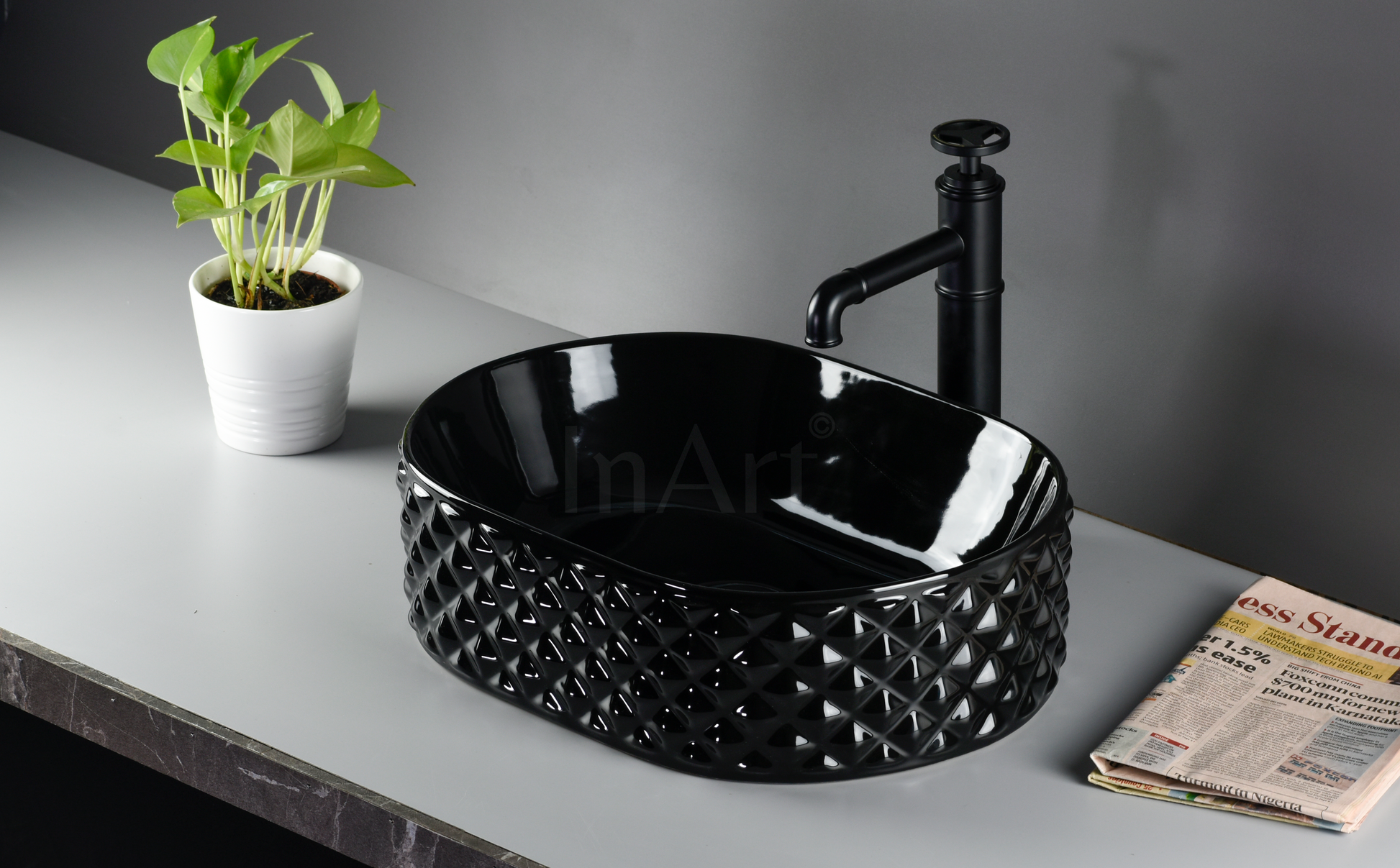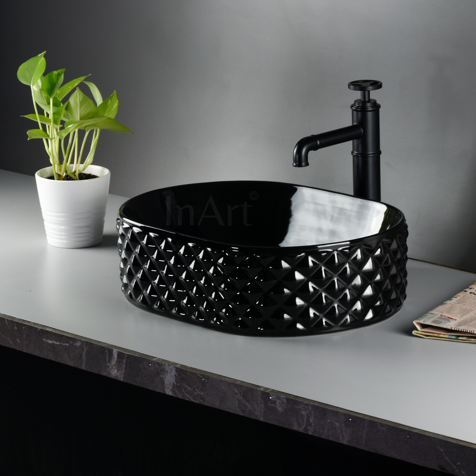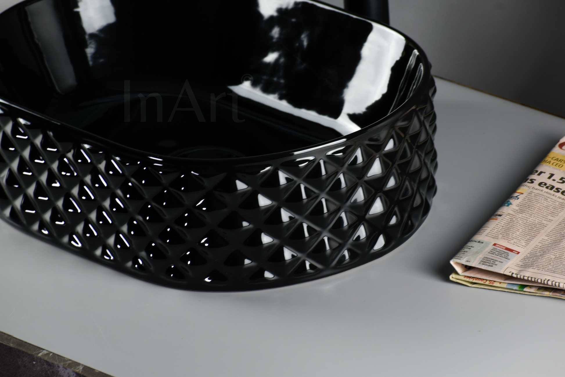 InArt Ceramic Modern Black Table Top Wash Basin 45 x 34 CM DW310