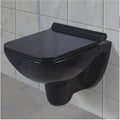 InArt Ceramic Rimless Glossy Black Western Toilet Seat Commode Wall Mounted or Wall Hanging Commode with Soft Seat Cover DWH003