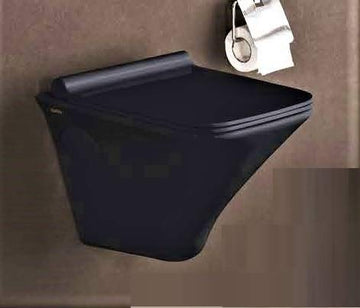 InArt Ceramic Rimless Wall Hung or Wall Mounted Water Closet Toilet with Soft Seat Cover Black Color WH022