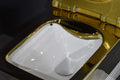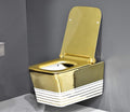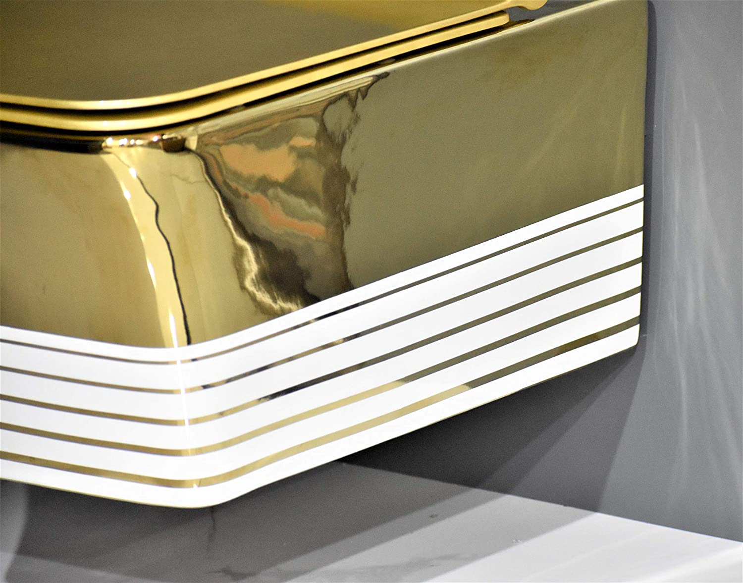 InArt Ceramic Rimless Wall Hung or Wall Mounted Water Closet Toilet with Soft Seat Cover Stripe Pattern White Gold Color DWH008
