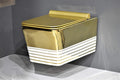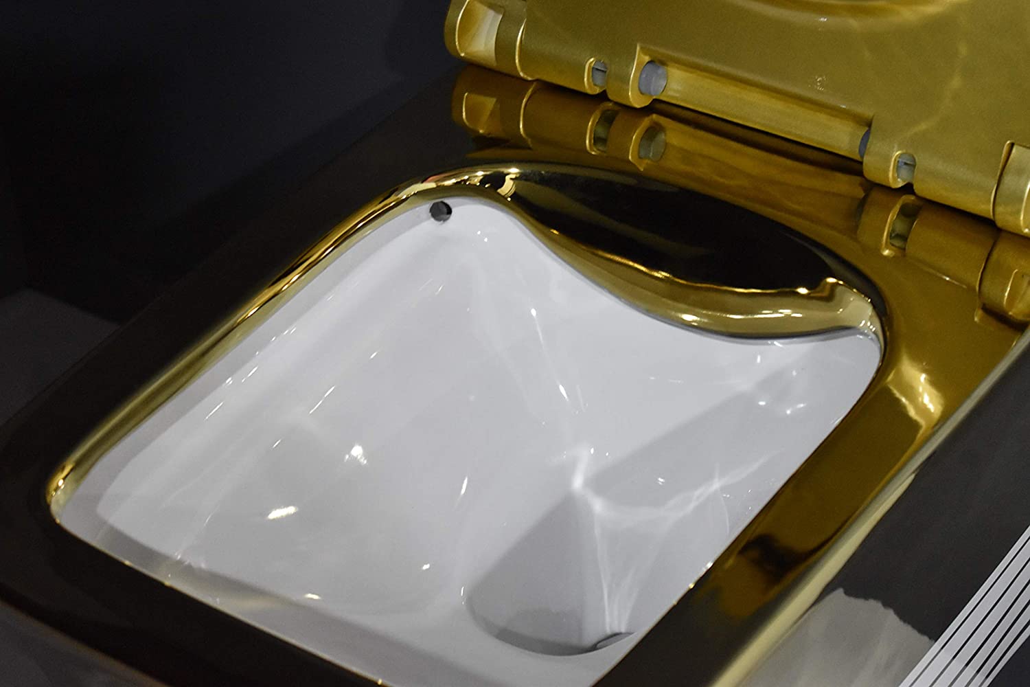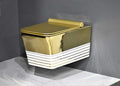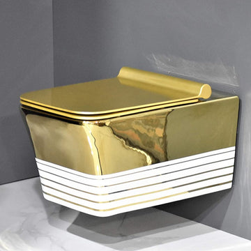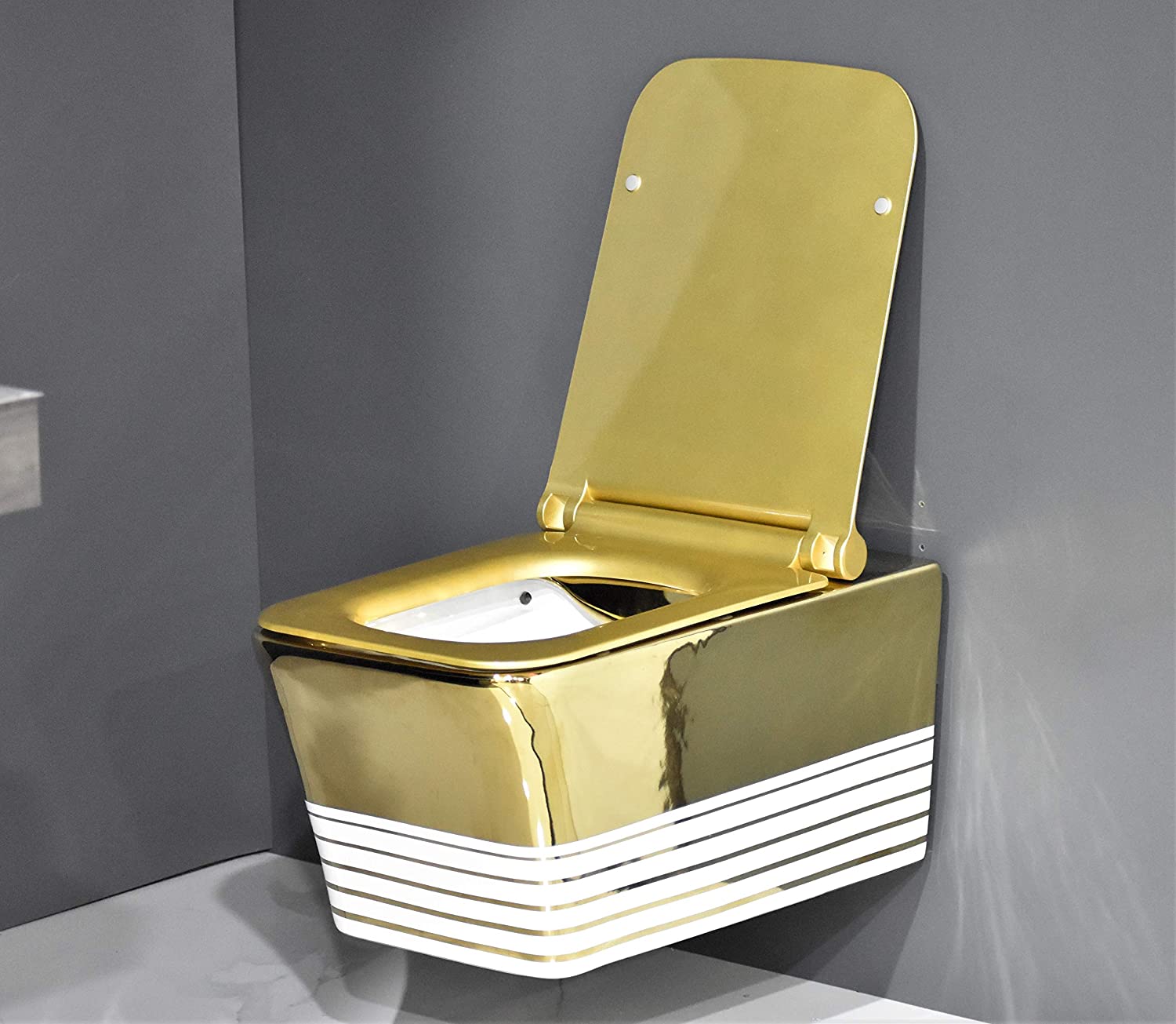 Bathroom Ceramic Commode Wall Mount Toilet White Gold Color Stripe Pattern