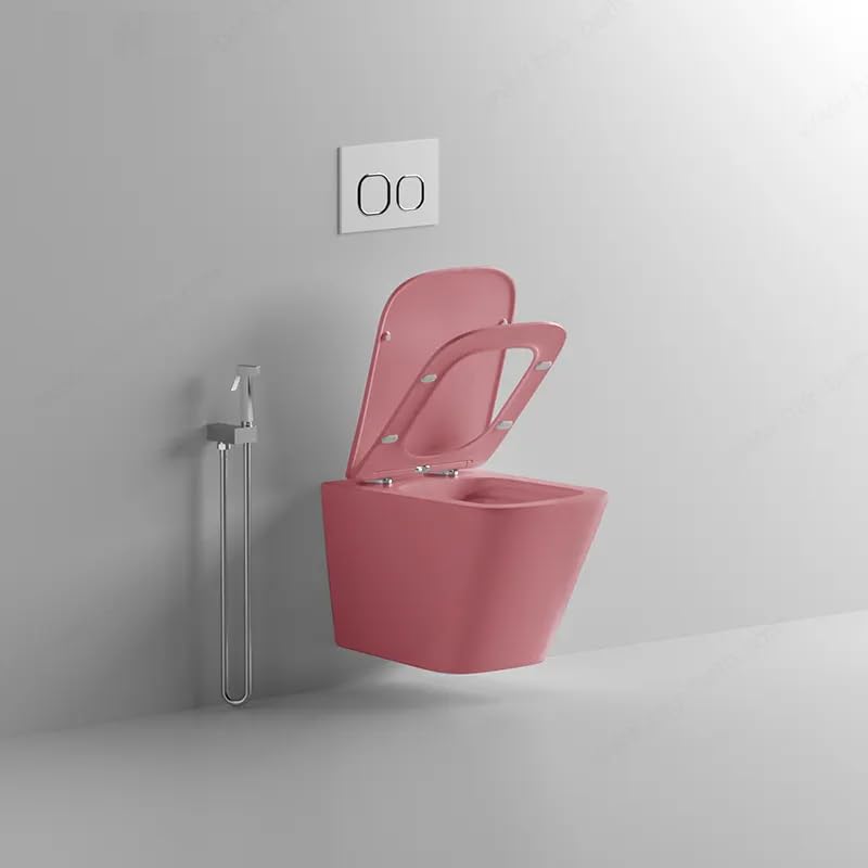 InArt Ceramic Wall Hung or Wall Mounted Designer (Clean Rim) Rimless Water Closet Toilet with Soft Close Seat Cover Pink Matt Finish DWH032