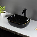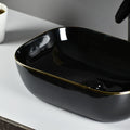 InArt Designer Ceramic Wash Basin / (Inch 18 x 13 x 5) /Glossy Finish/Counter top/Tabletop Ceramic Bathroom Sink Black Gold DW283