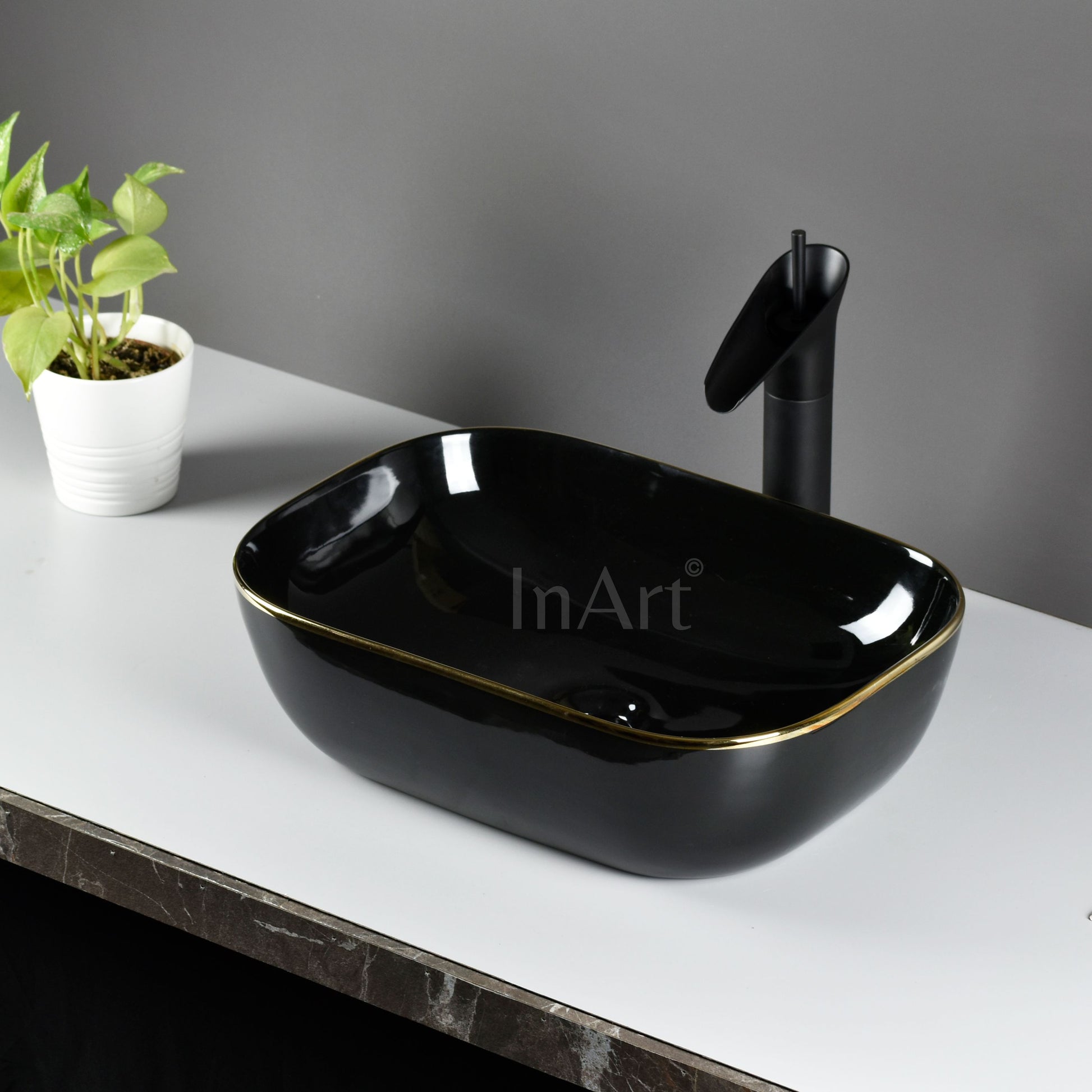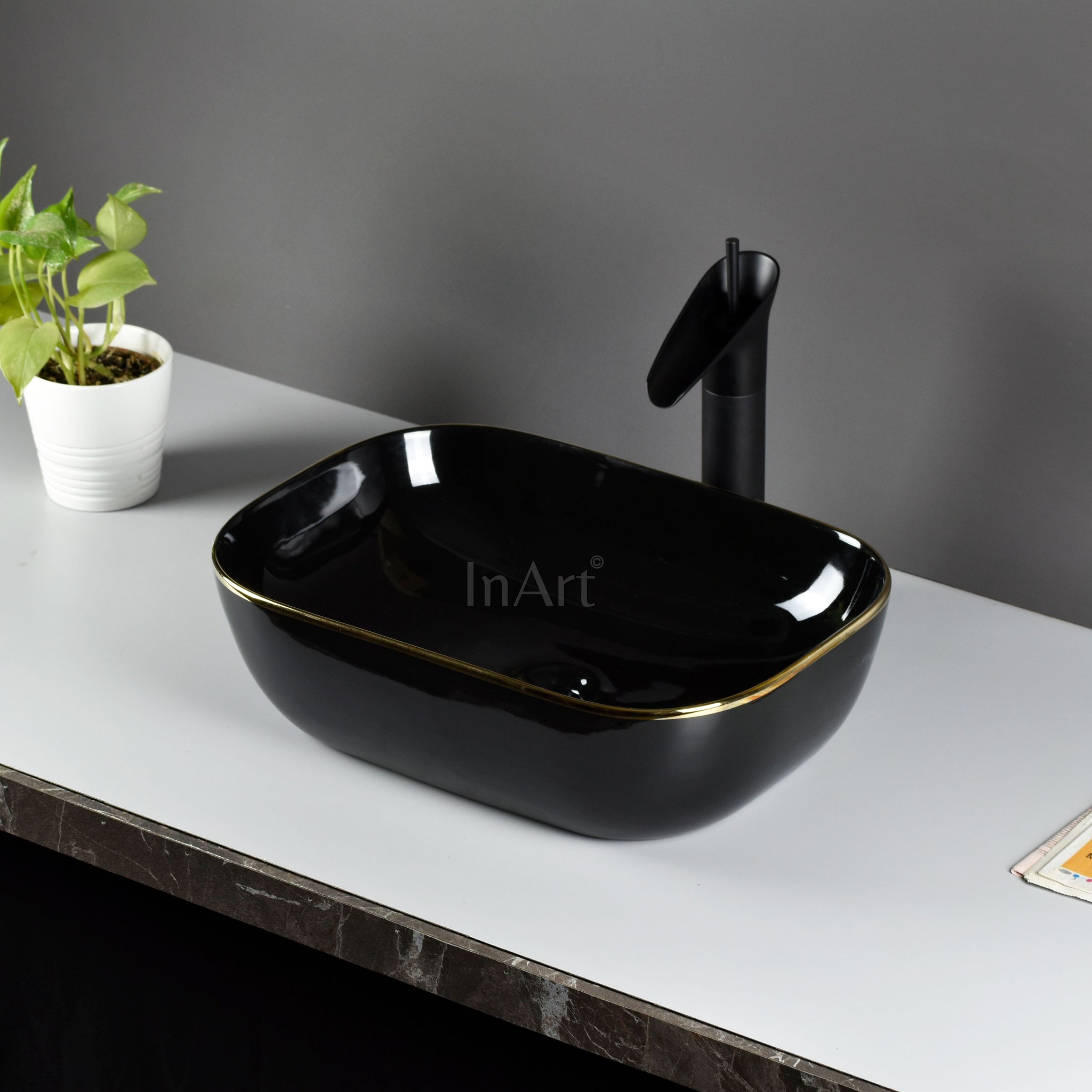 Elevate Your Bathroom's Elegance with the InArt Designer Ceramic Wash Basin in Black Gold