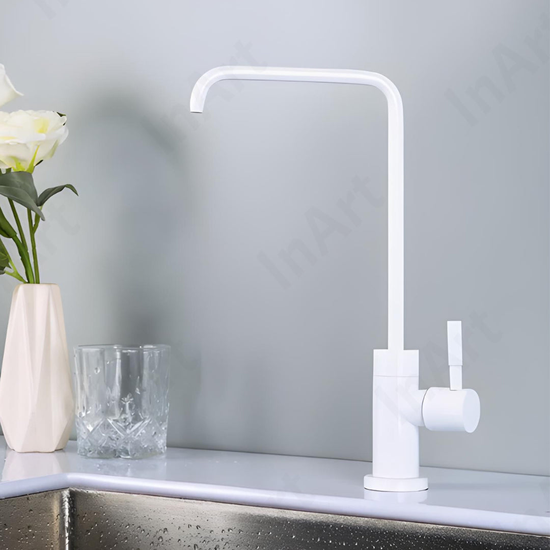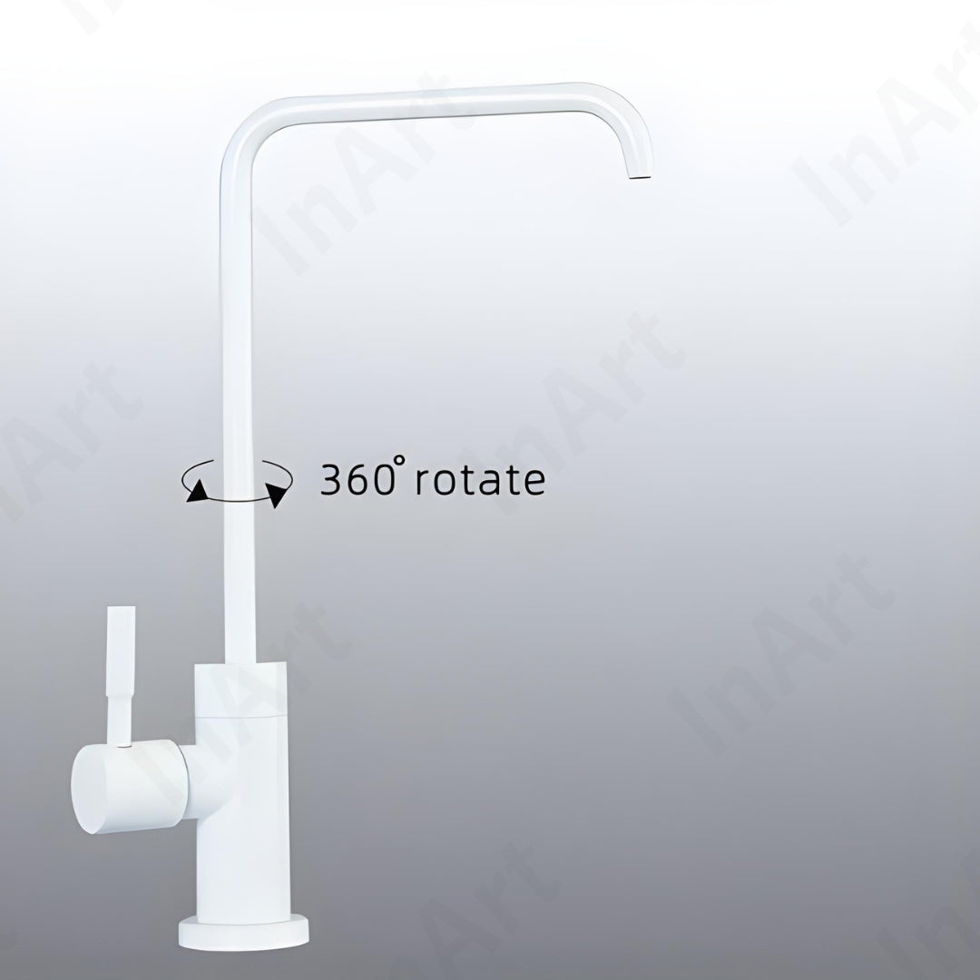 InArt Drinking Water Faucet for Kitchen Sink - Stainless Steel, White Glossy Finish, 360 Swivel, Non-Air Gap RO Faucet with 2-Year Warranty SS304, 360Β° Swivel Square KSF055