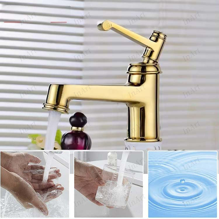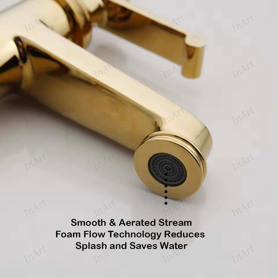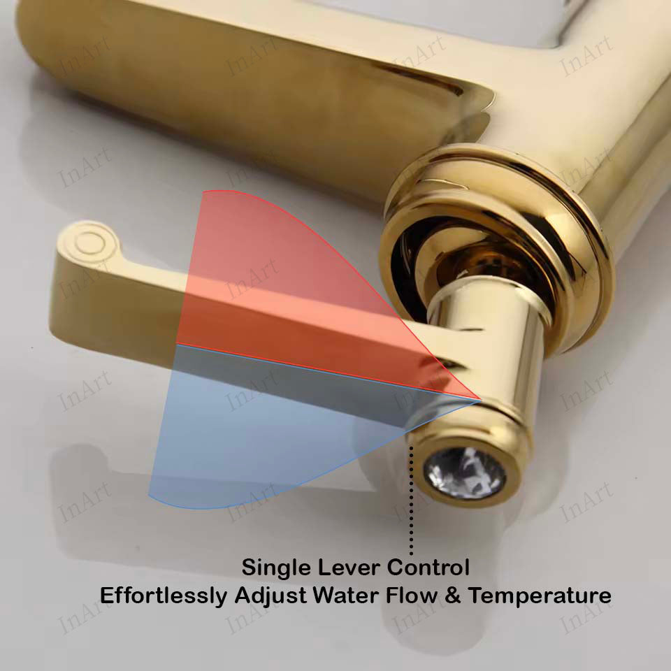 InArt Gold Finish Basin Pillar Tap - Hot & Cold Mixer, Single Handle, Waterfall Design, Table Mount BF006